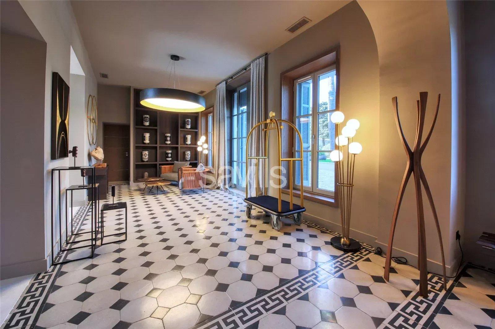 Aux niveaux supérieurs, cinq superbes suites de 40 à 65 m² offrent un confort absolu, chacune disposant d’un dressing, d’une salle de bains ou salle de douches privative, de toilettes séparées, et ouvrant sur de vastes terrasses avec une vue sur la mer et le parc privé.