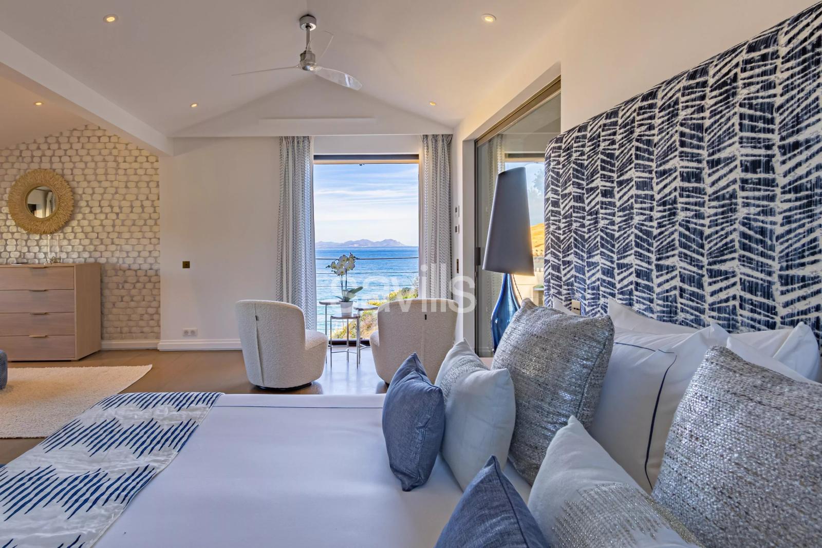 En rez-de-jardin, vous découvrirez un patio central autour duquel s'articulent une cuisine équipée avec accès indépendant pour le personnel ouvert sur une terrasse, une salle à manger vue mer, un séjour vue mer sublimé par de larges terrasses couvertes prolongeant l'espace de vie, cinq chambres en suite chacune bénéficiant d'une salle de bains et de toilettes.