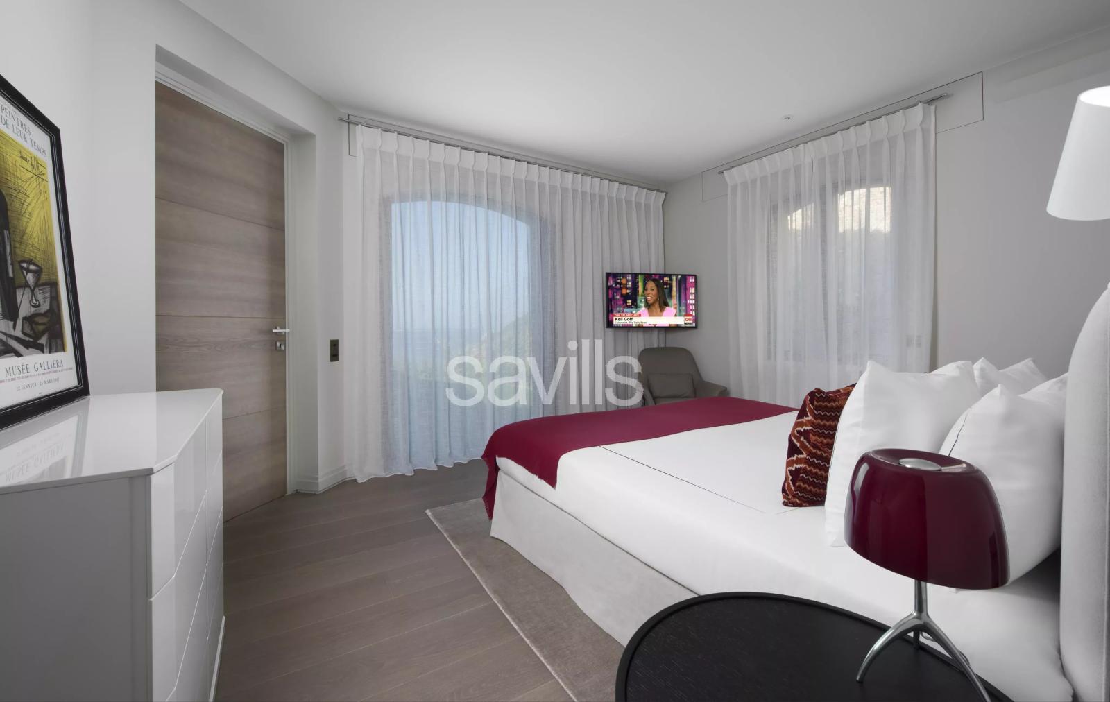 D'une surface d'environ 400 m² répartie sur deux niveaux, elle se compose à l'étage, d'une chambre principale avec terrasse avec vue mer, d'un dressing et de deux salles de bains.