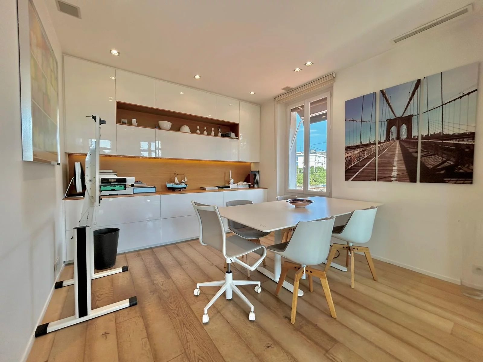 L’espace de vie lumineux avec son balcon tourné sur la croisette s’accompagne d’une cuisine moderne parfaitement équipée, ainsi que de deux chambres confortables et bien agencées. Avec son hauteur sous plafon de 3m, ce bien allie élégance, technologie et fonctionnalité.