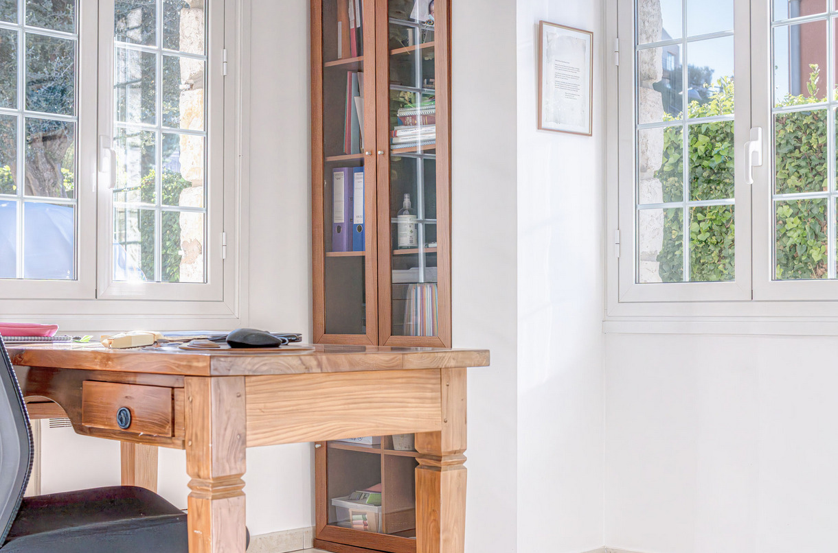 Au niveau principal, elle se compose d'un grand séjour très lumineux avec une cuisine ouverte équipée, d'un bureau, d'une toilette invité et d'un cellier.