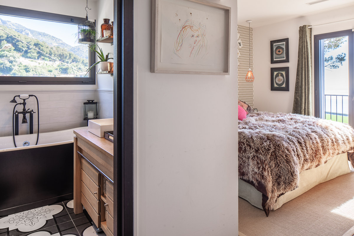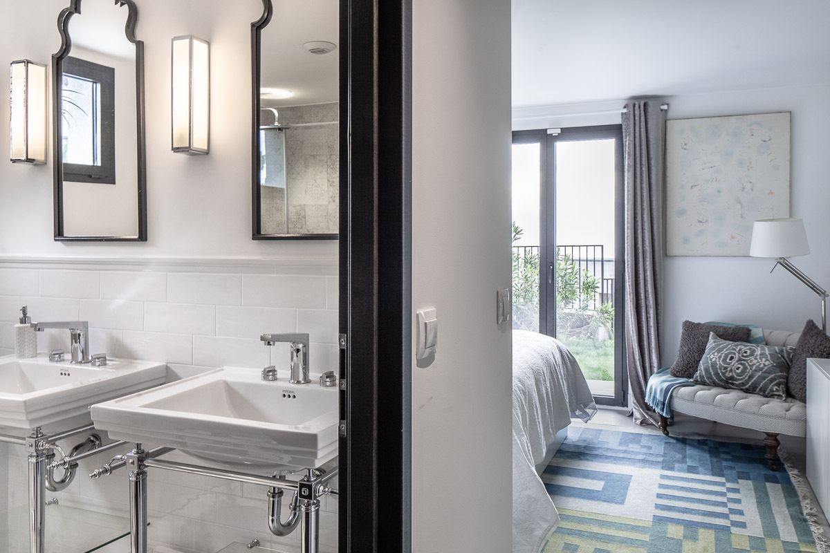 - Trois chambres en suite avec dressings et salles de bain attenantes. Toutes les chambres ont une décoration personnalisée et s'ouvrent sur le jardin au niveau de la piscine