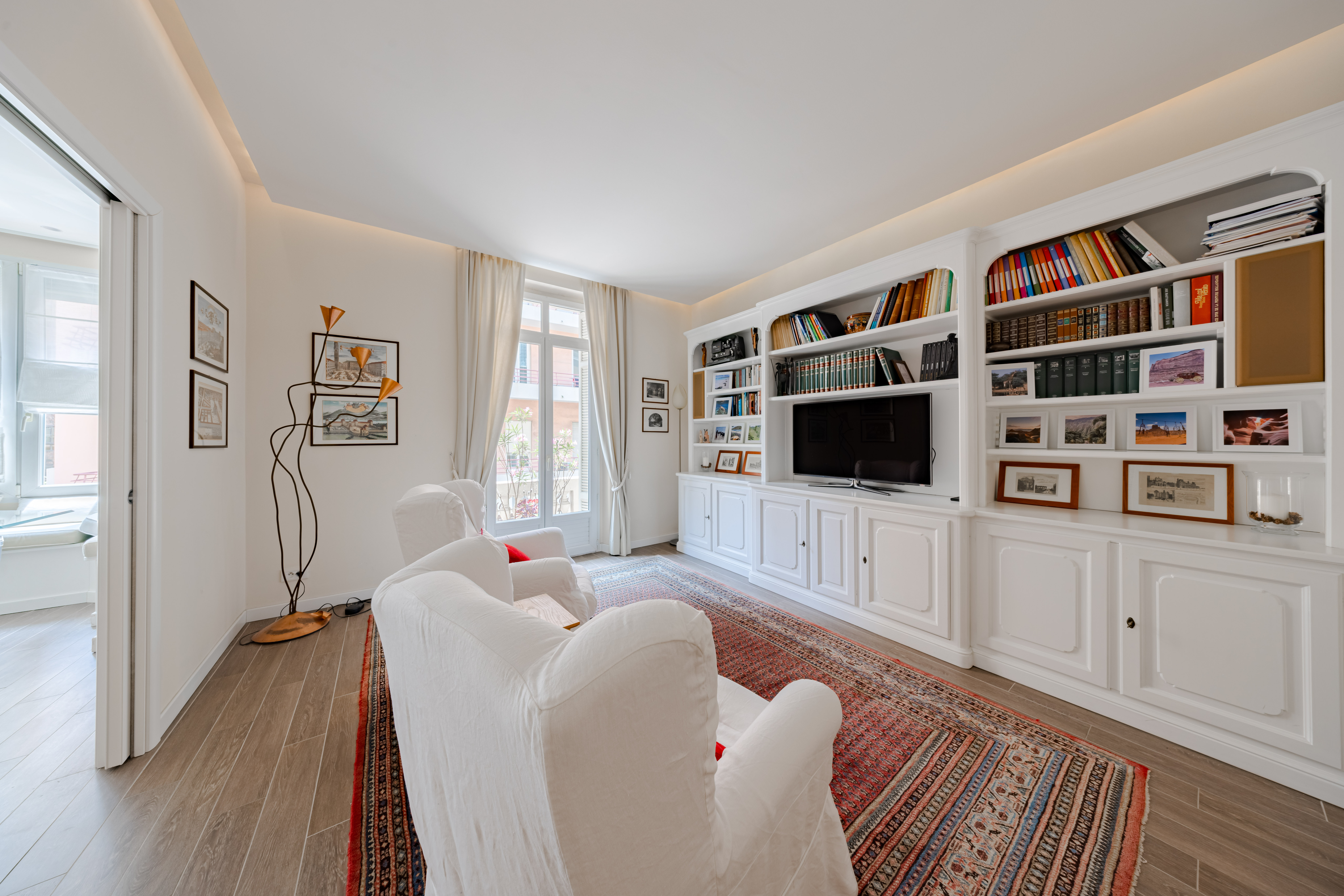 L’un des salons peut facilement être converti en troisième chambre grâce à des portes coulissantes intégrées, offrant ainsi une configuration adaptable selon les besoins.
