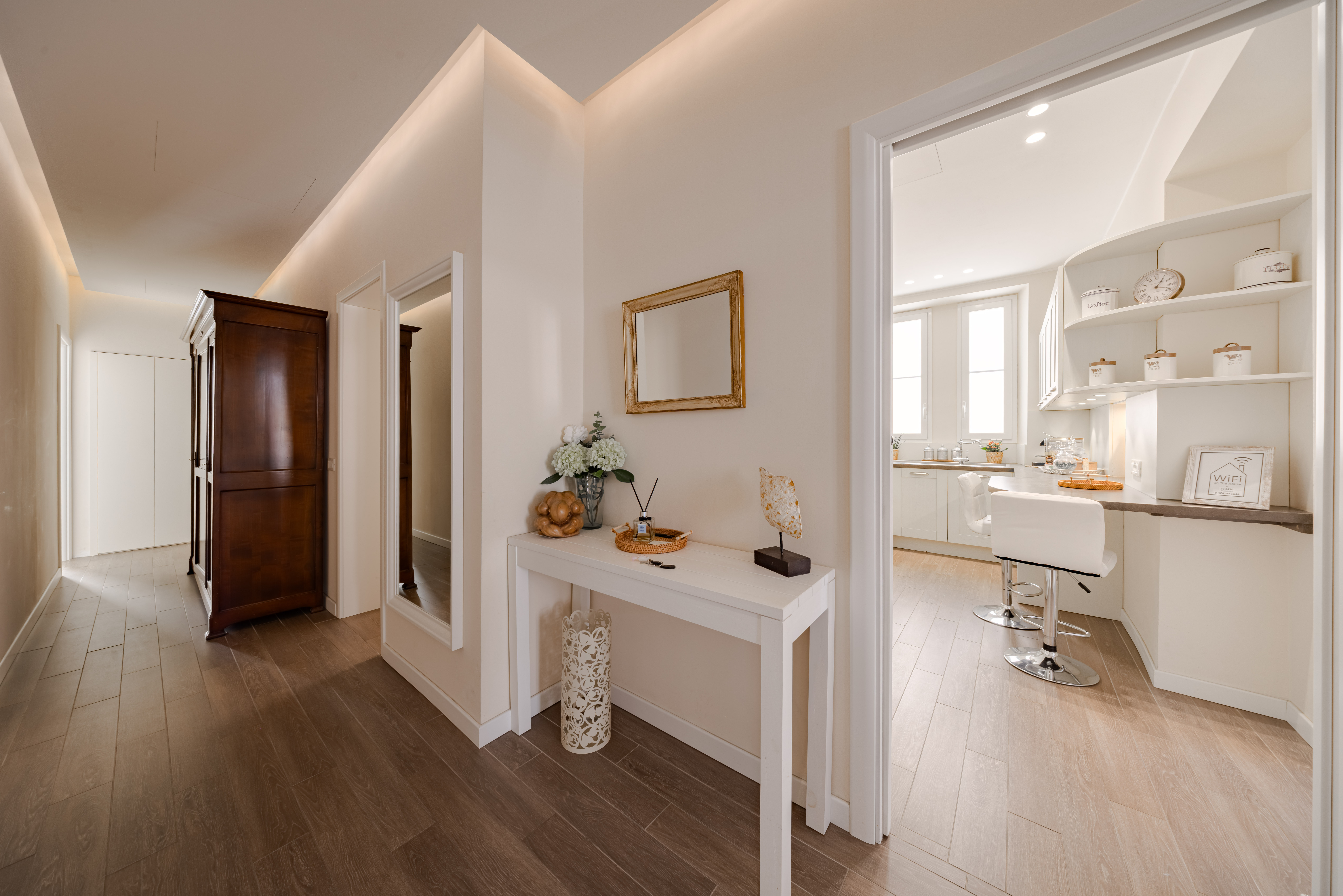 D’une superficie d’environ 130 m², il a fait l’objet d’une rénovation complète avec des matériaux de grande qualité, dont un magnifique parquet en bâtons rompus qui confère un caractère raffiné à l’ensemble. L’espace de vie s’organise autour d’un double séjour baigné de lumière, sublimé par un bow-window, et prolongé par une cuisine ouverte, entièrement équipée et aménagée avec soin.
