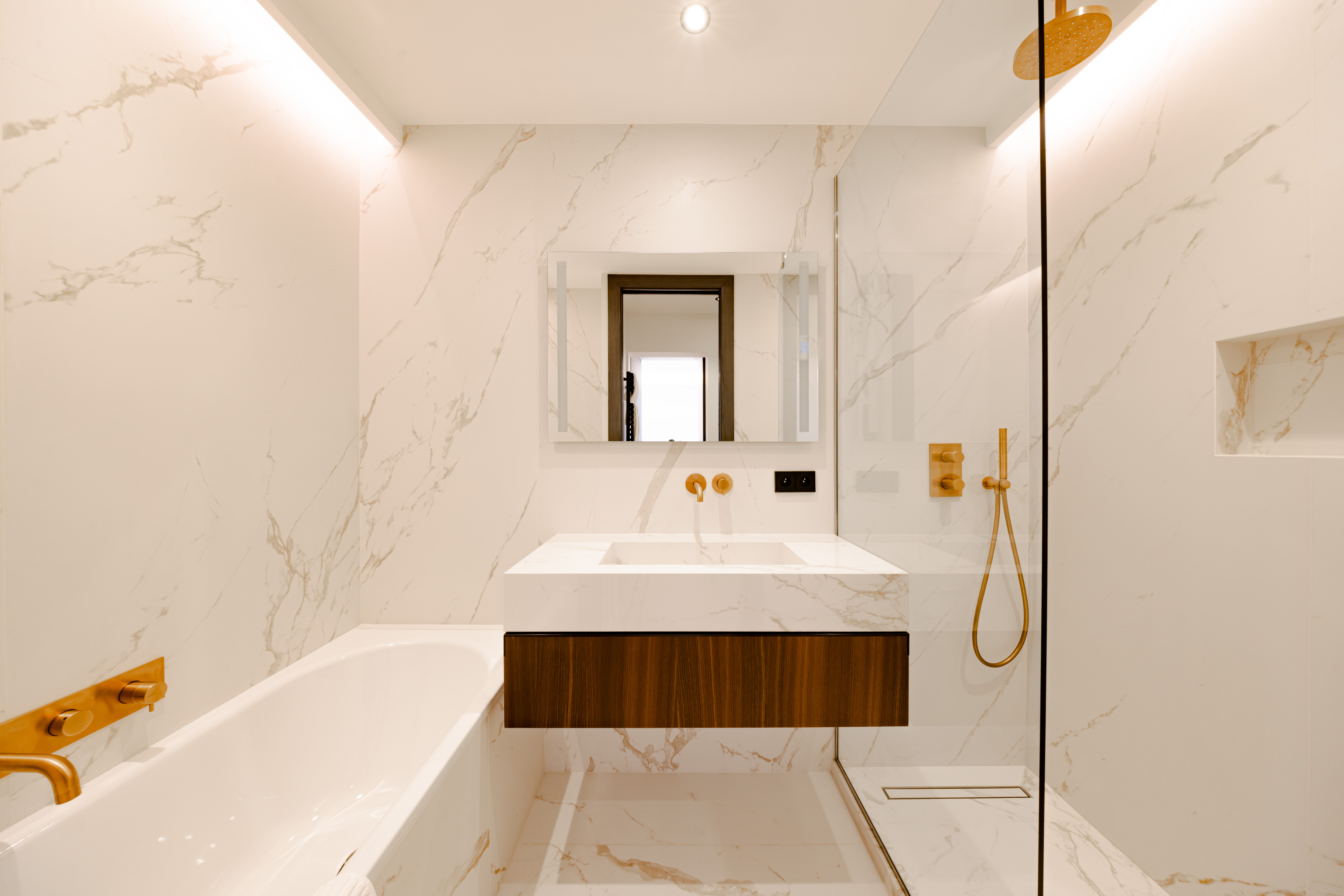 Chaque mètre carré a été soigneusement optimisé : de nombreux rangements sur mesure ont été intégrés, dont un dressing walk-in et une buanderie.