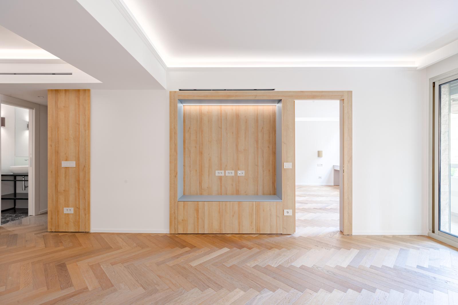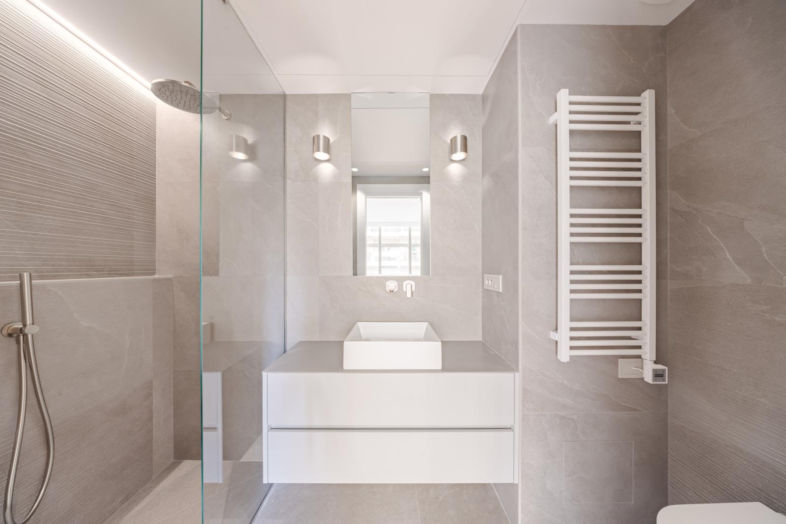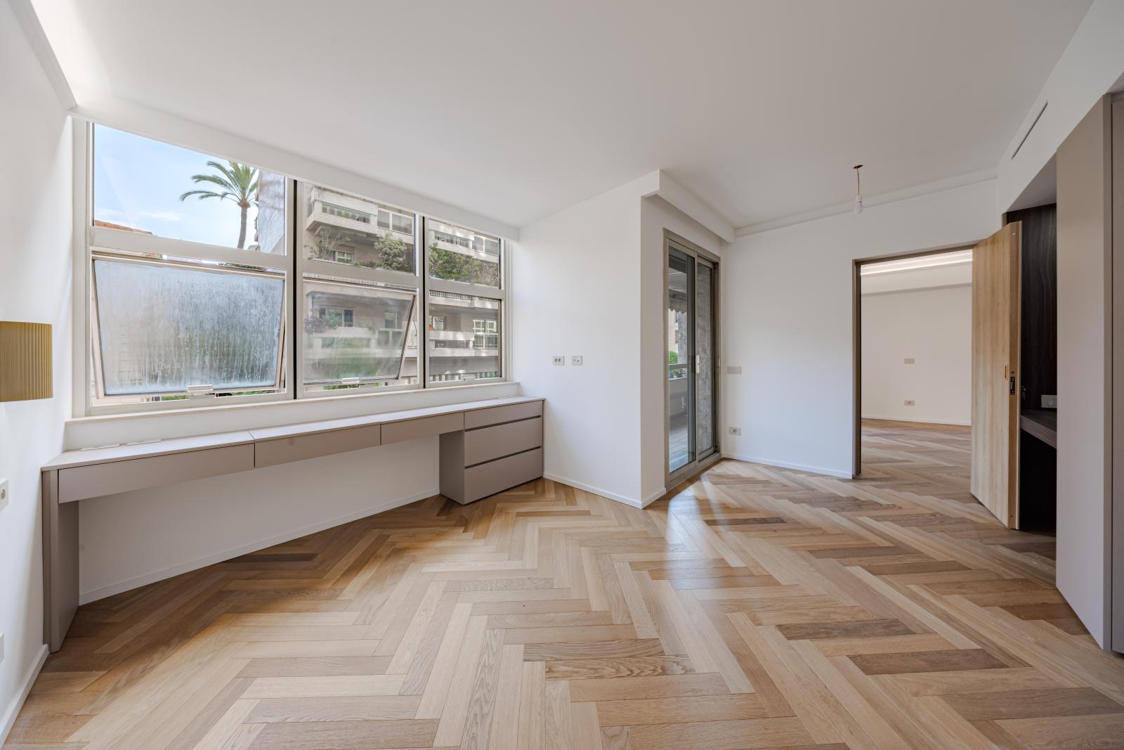 Ce grand appartement offre de beaux volumes et une distribution fonctionnelle. Il se compose d’une entrée avec rangements, d’une cuisine entièrement équipée, de deux chambres avec deux salles de bains et une terrasse qui prolonge agréablement l’espace de vie.