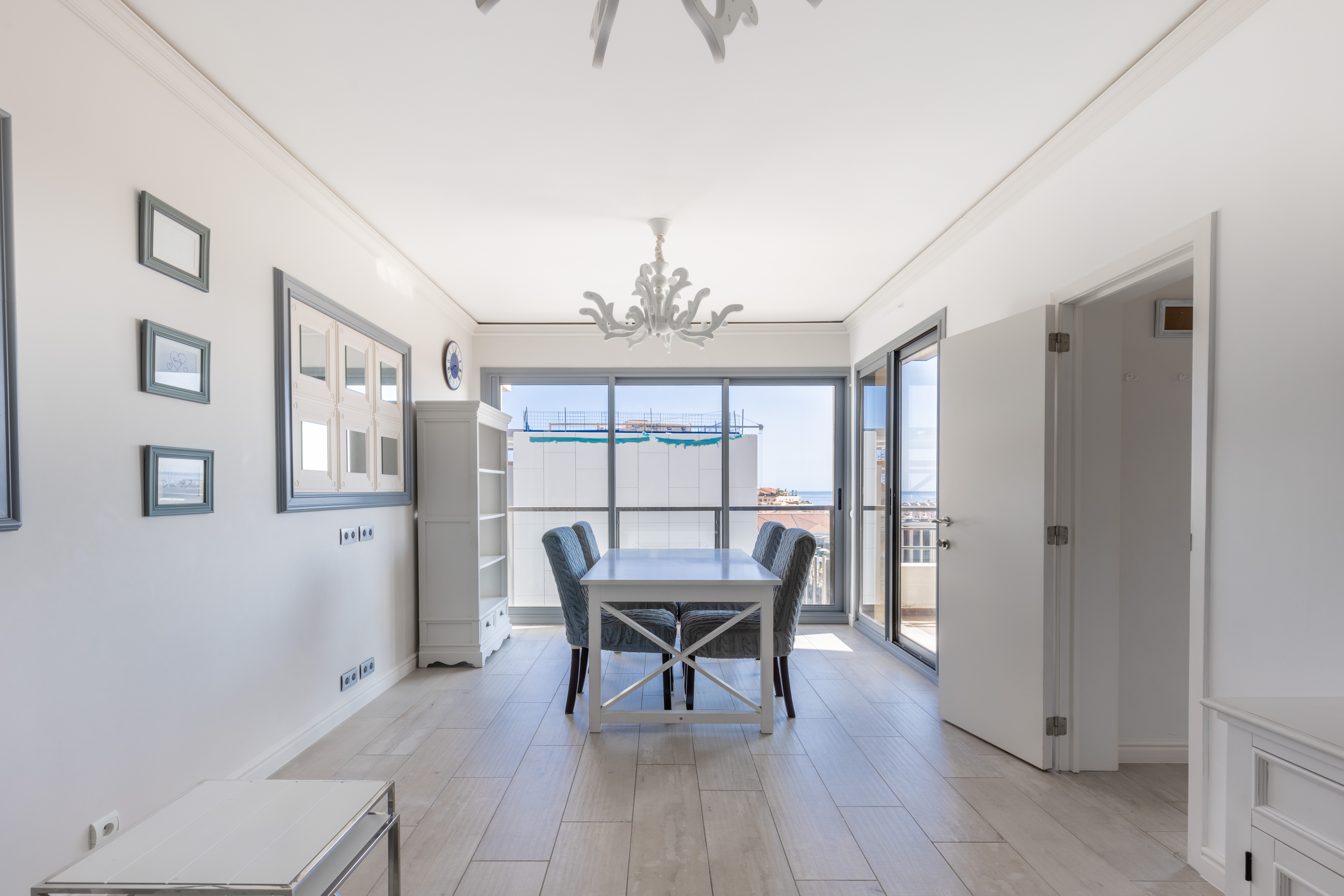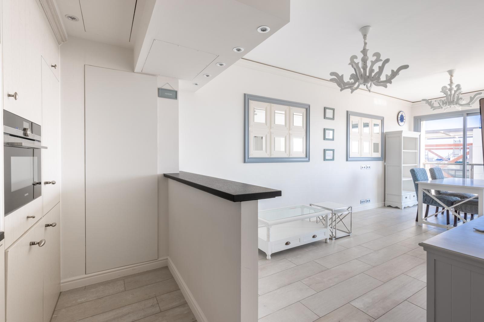 Appartement situé en étage élevé composé d'une entrée, cuisine ouverte équipée, séjour, deux chambres, salle de bains, toilettes invités.