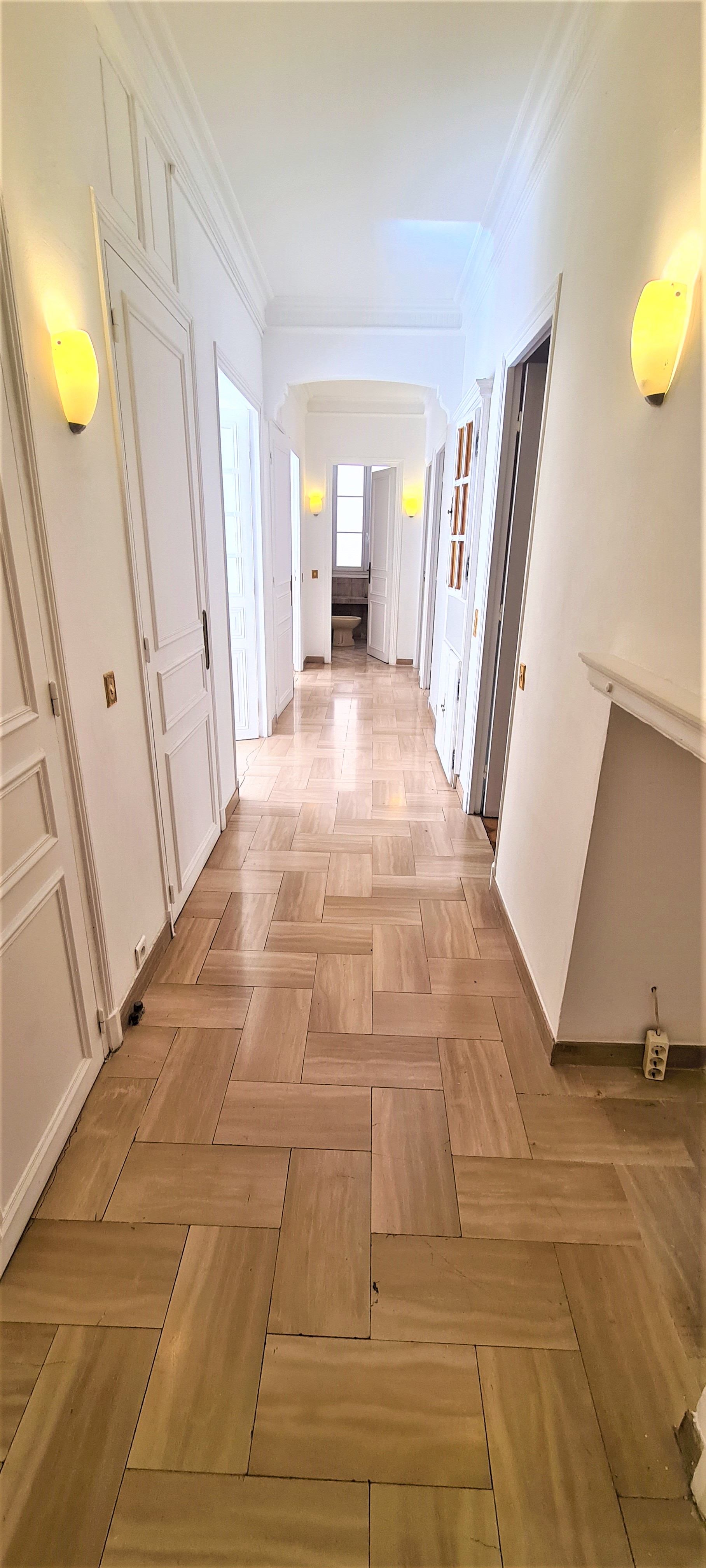 L'appartement est composé actuellement d'un grand hall d'entrée avec placards, dégagements, salon/ salle à manger, cuisine indépendante, 3 chambres, grand dressing et une salle de bains. Balcons.