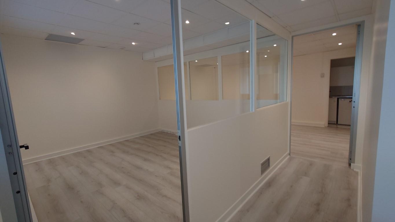Bureau de 63 m2 en très bonne état, se composant d'une pièce principale comprenant 3 bureaux avec vitrines cloisonnées.