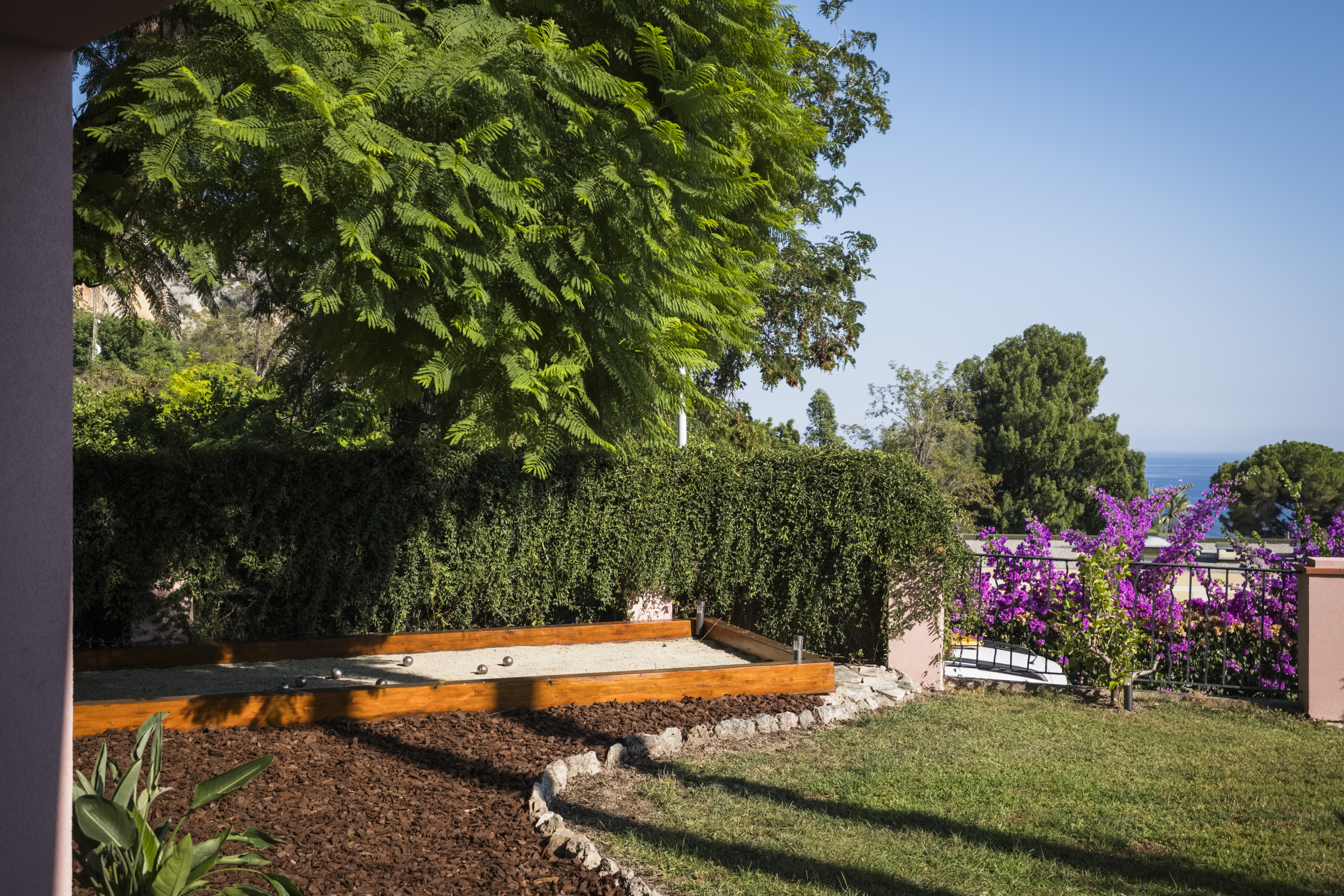 Cette charmante demeure Belle Époque avec vue panoramique sur la mer depuis la plupart des chambres est située dans la ville côtière classique de Menton, à quelques minutes à pied de la frontière italienne. Reposez-vous dans un endroit très paisible et unique, où vous pourrez écouter le chant des cigales et le chant des oiseaux, tout en étant à distance de marche de la vieille ville et des plages de Menton. Il est facilement accessible en train direct depuis l’aéroport de Nice et en voiture et en train depuis la France et l’Italie. Idéal pour les vacances d'été en famille élargie ou les réunions d'amis, avec de nombreuses activités dans la ville et à proximité.