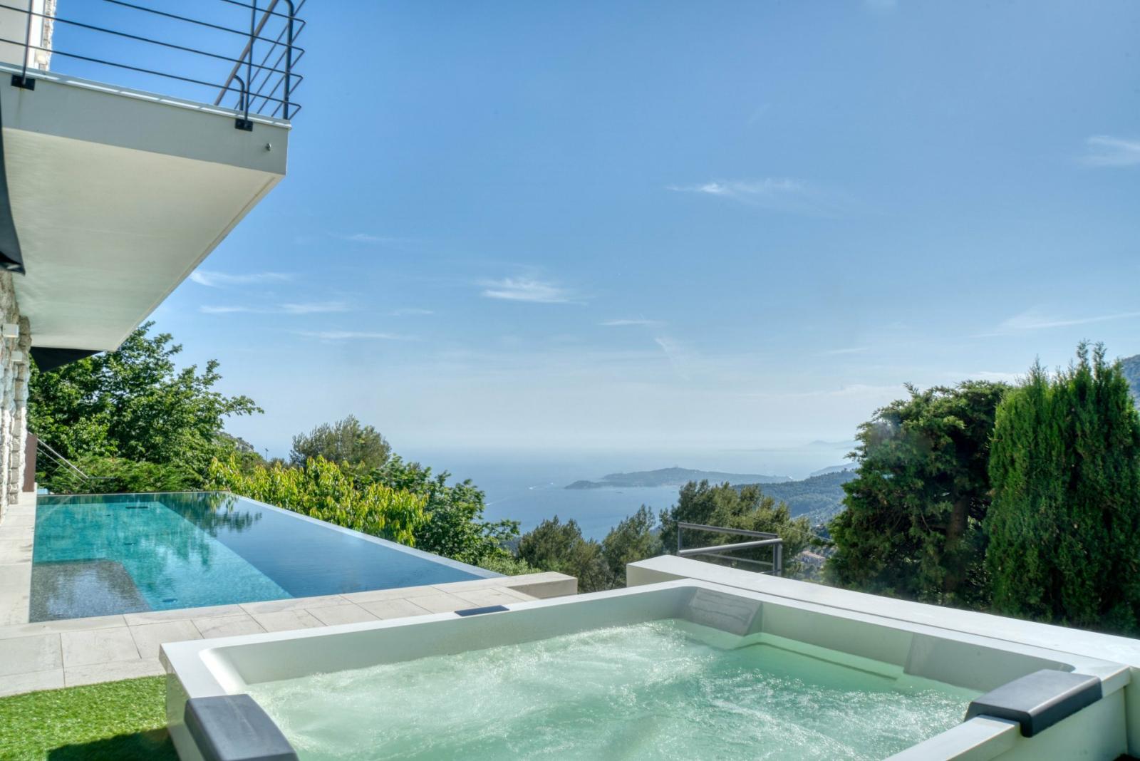 Magnifique villa moderne exposée sud ouest entièrement rénovée à la Turbie, à seulement 10 minutes de Monaco. Cette villa édifiée sur 3 niveaux comprend des prestations haut de gamme avec domotique, système son intérieur/extérieur, mitigeur à eau gazeuse, contrôle des lumière, hammam, sauna, salle de sport, fire pit....