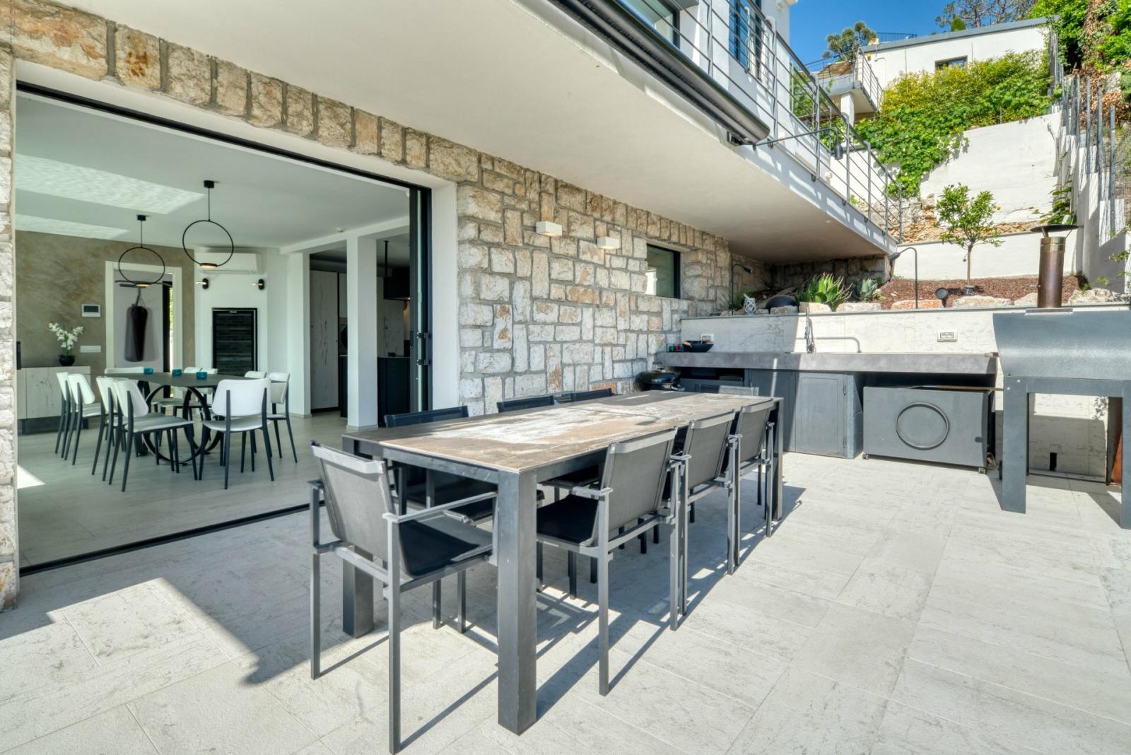 Au niveau piscine, une cuisine américaine donnant sur le pool house comprenant un barbecue, une cuisine d'été la piscine à débordement, un jacuzzi, un hammam un sauna et une salle de sport.