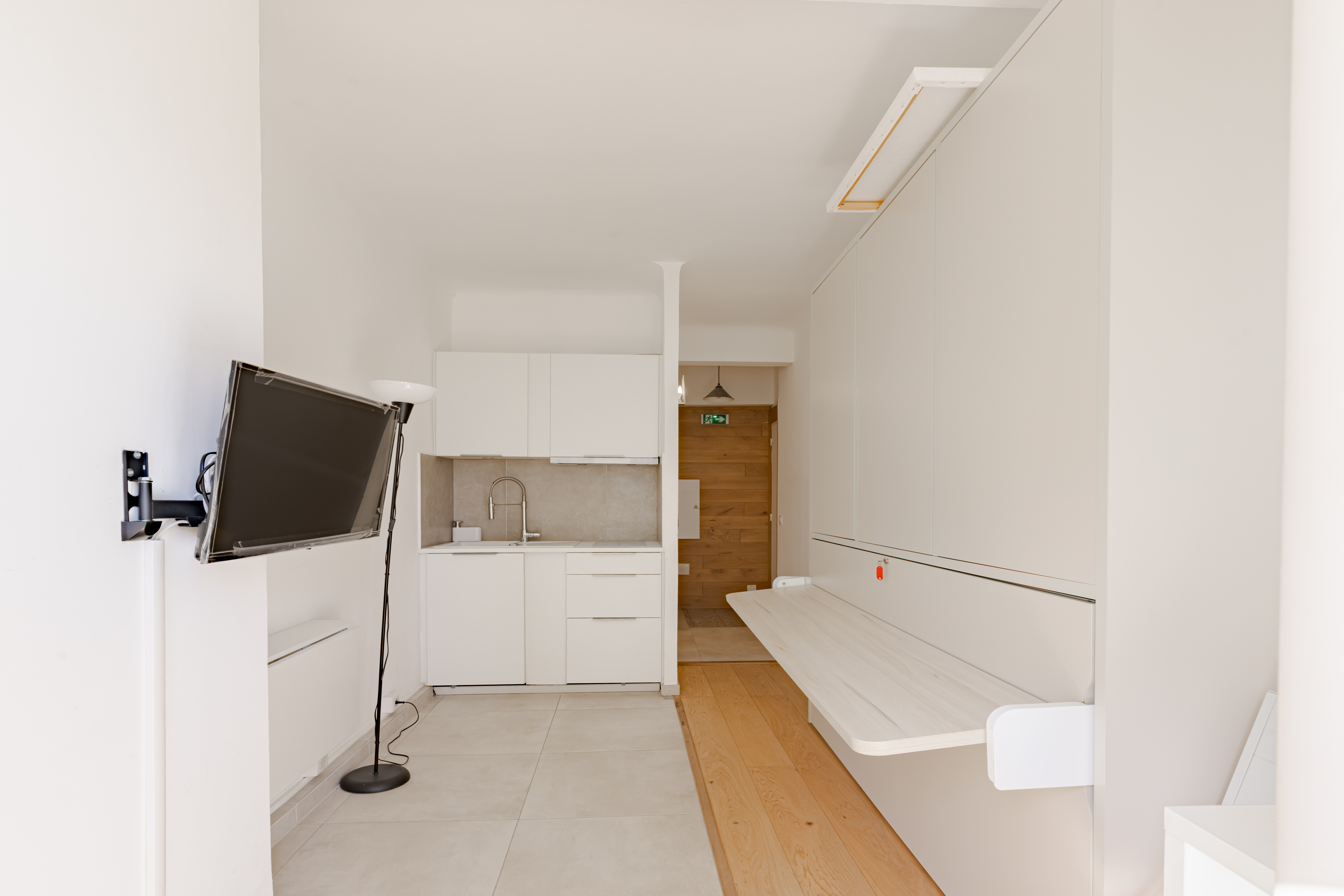 Très proche du centre, et dans un charmant immeuble avec concierge, joli studio à usage mixte en excellent état et composé d'une pièce principale avec kitchenette et une salle de douches complète.