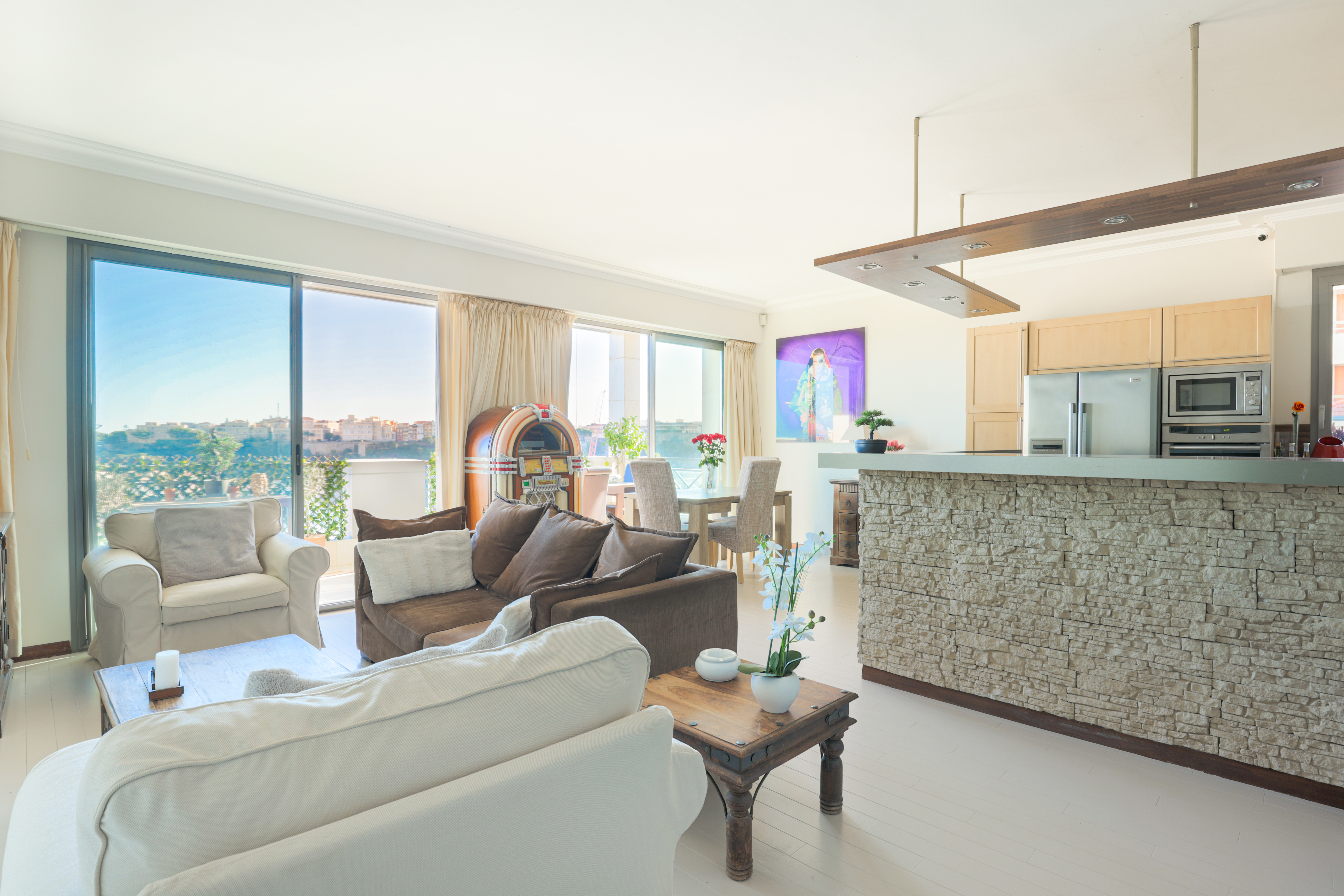 L’appartement domine le port de Monaco et offre une jolie vue sur la mer et le Palais Princier.