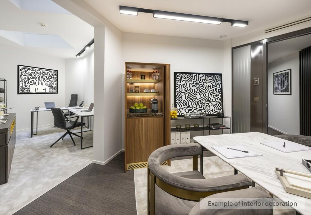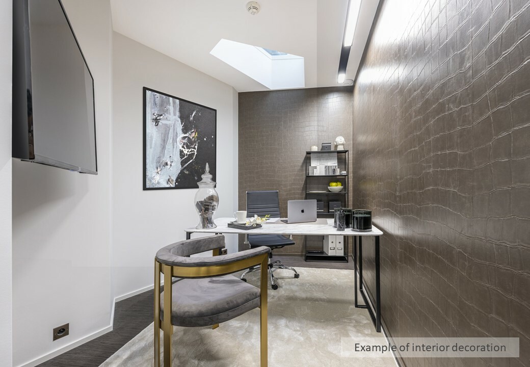 Au sein d’un ensemble de bureau de grand luxe, ce bureau rénové avec des matériaux de qualité est un espace de travail idéal.