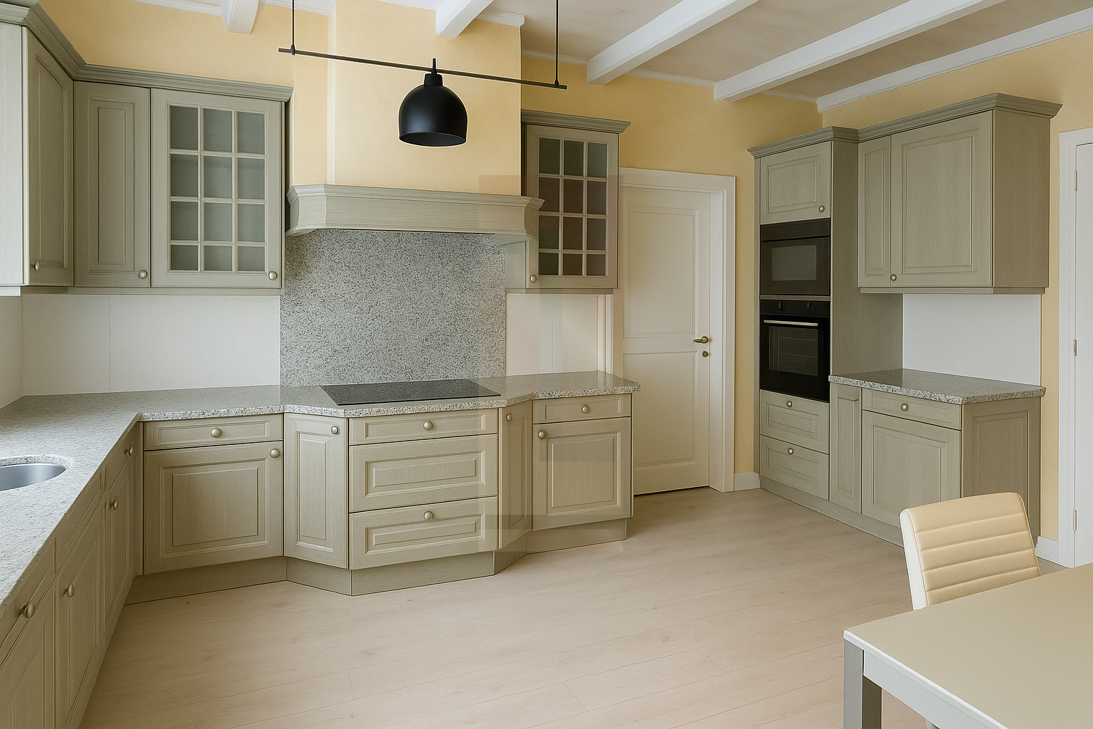 - Rez-de-chaussée : Un hall d’entrée accueillant mène à une spacieuse cuisine avec coin repas et grand office, idéale pour les amateurs de gastronomie. Le vaste séjour avec cheminée et la salle à manger attenante offrent un cadre raffiné pour recevoir. Un bureau, une chambre à coucher et une salle de douche/WC complètent cet étage.