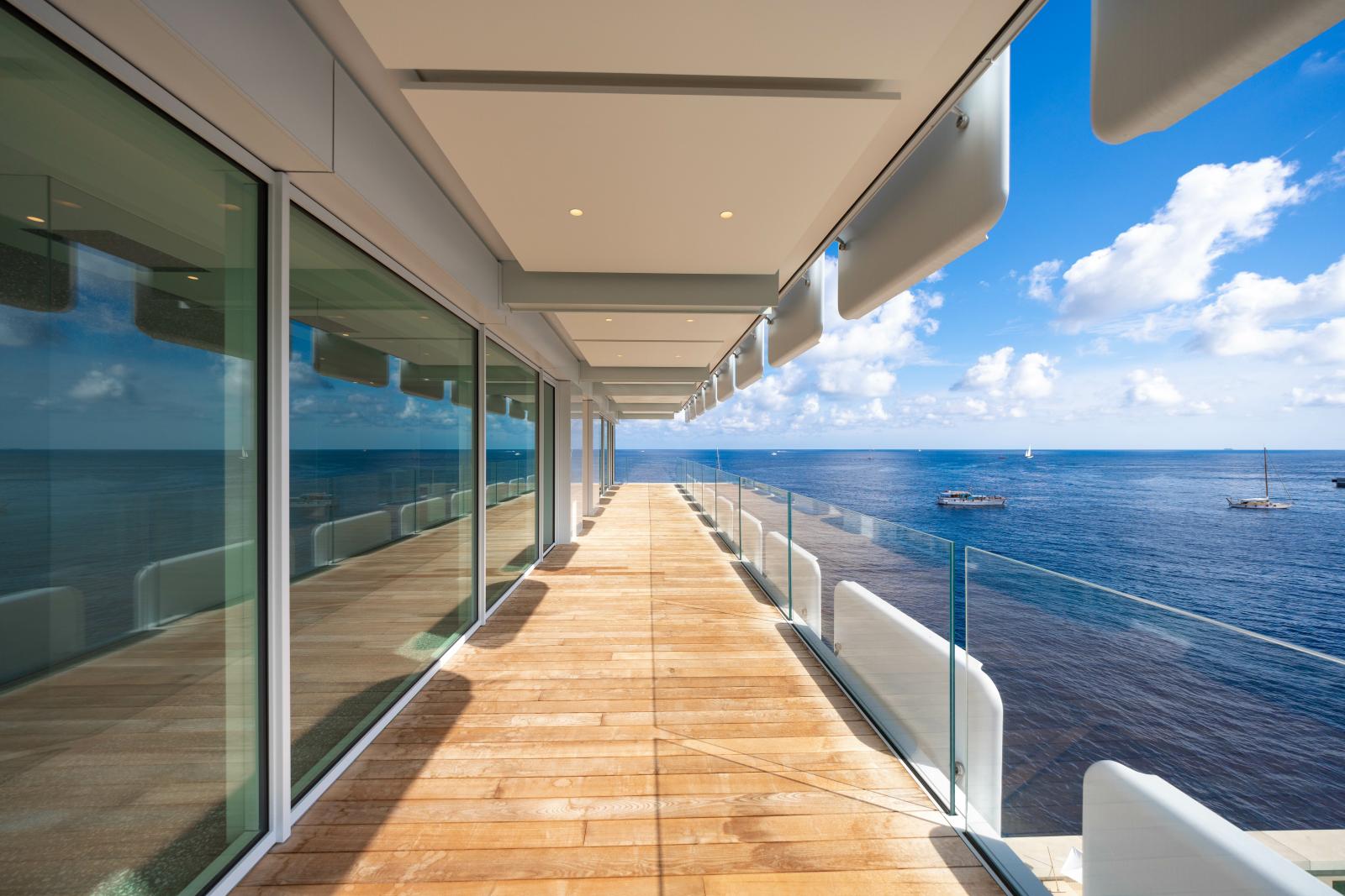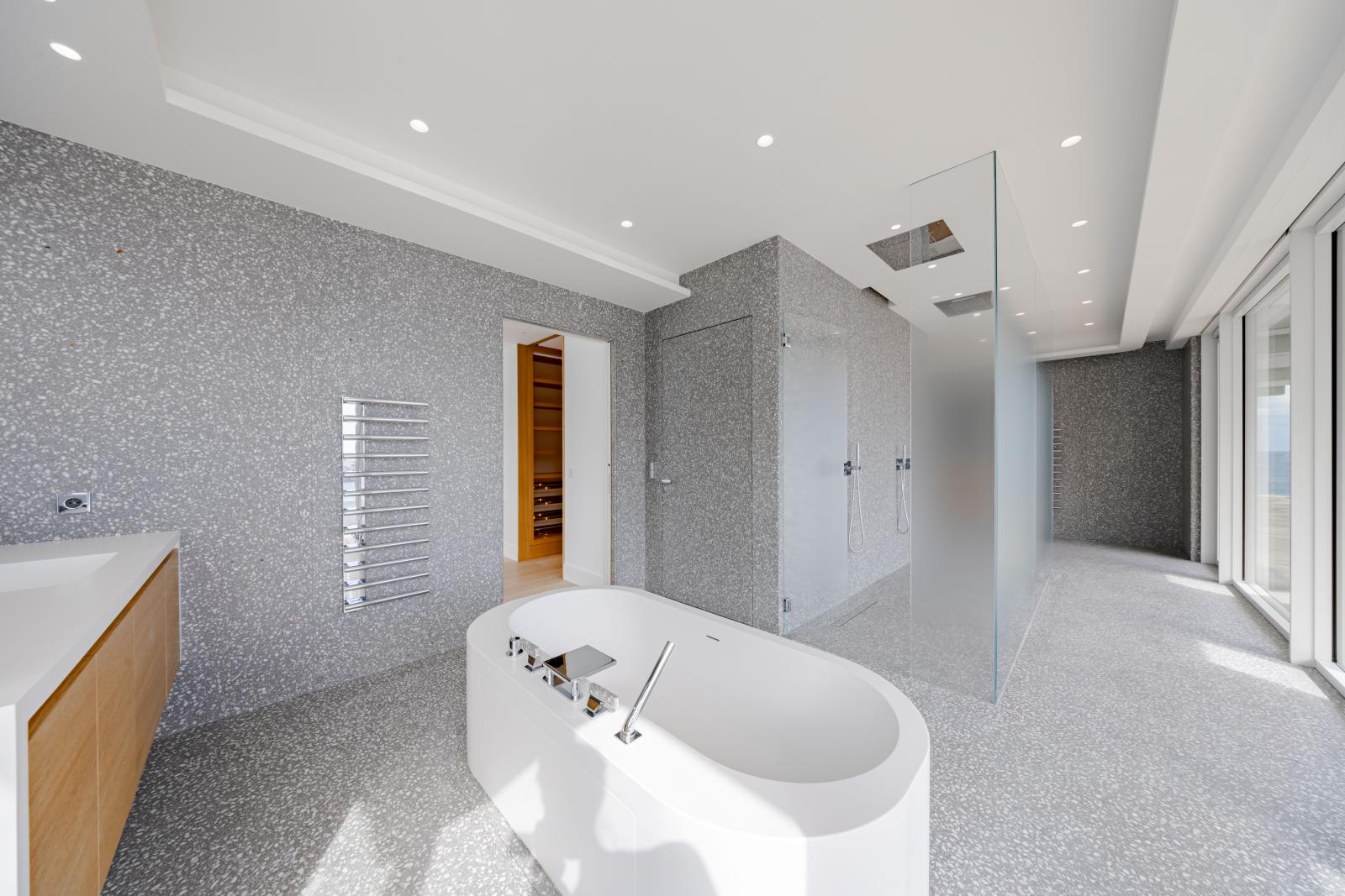 Une buanderie et des toilettes invités ajoutent à la fonctionnalité de l’ensemble. À l’extérieur, trois terrasses panoramiques offrent des vues spectaculaires sur la mer, le port et les couchers de soleil.