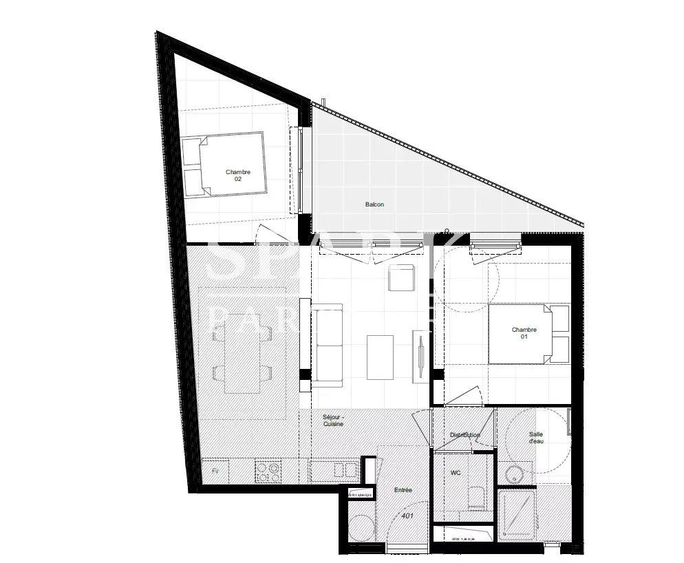 D’une surface habitable de 60,76 m², cet appartement spacieux et baigné de lumière a été conçu pour offrir un confort absolu dans un cadre de vie d’exception. Il se compose d’une entrée raffinée, d’un séjour lumineux avec cuisine ouverte, de deux chambres, d’une salle de bains, ainsi que d’une belle terrasse de 9,37 m².