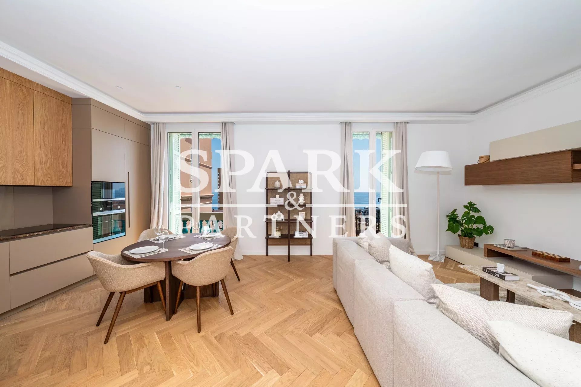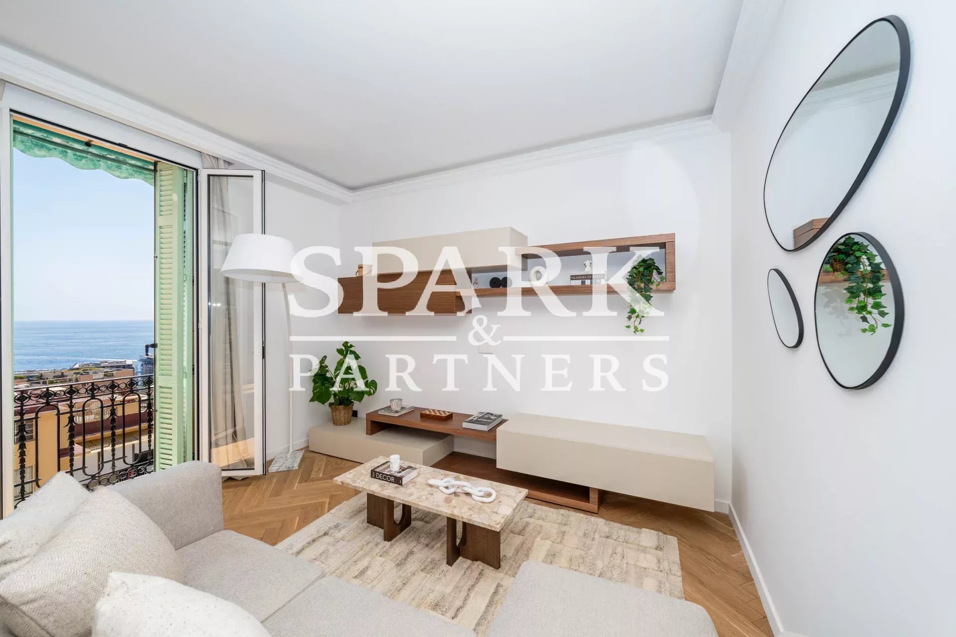 En plein cœur du quartier de Monte Carlo, proche de toutes commodités, superbe appartement de 3 pièces entièrement rénové avec des finitions de haute qualité, et une splendide vue sur la mer.