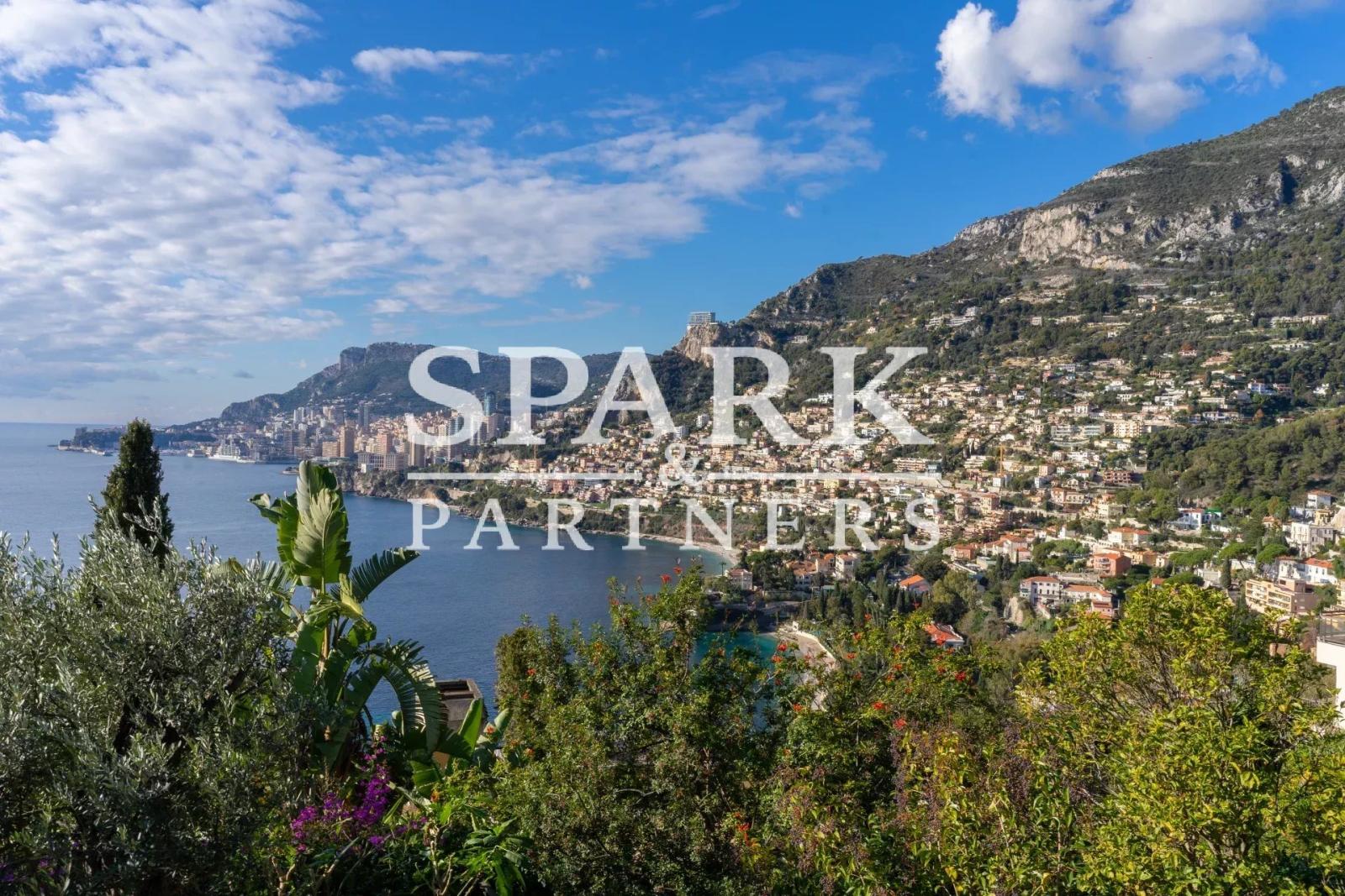 Située à Roquebrune Cap Martin, à seulement 10 minutes de la Principauté de Monaco, superbe propriété Belle Epoque, avec une vue mer panoramique.