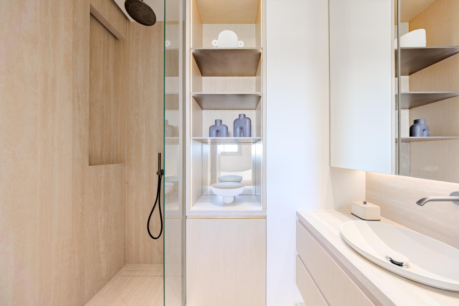 Une vaste terrasse vue mer ainsi qu’un box fermé complètent ce bien d’exception.