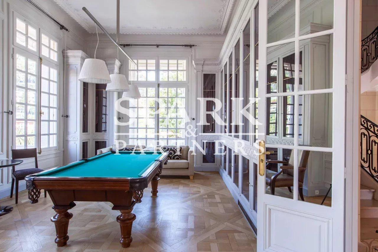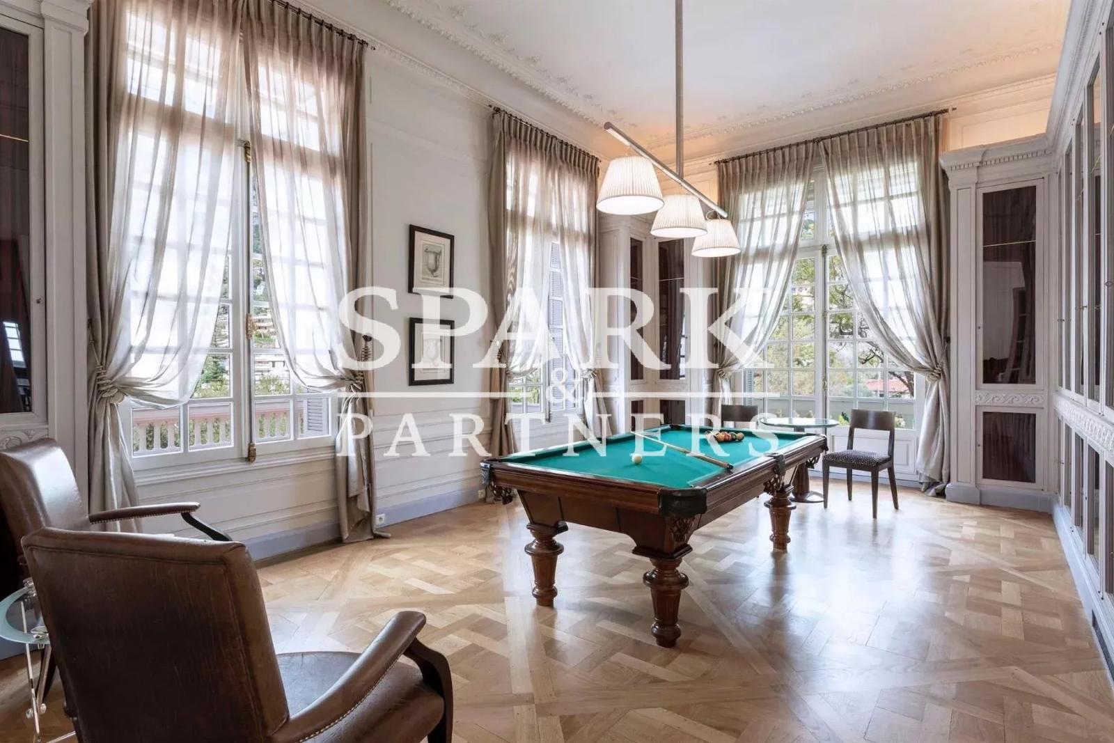 Au rez-de-chaussée, un hall d’entrée majestueux avec escalier monumental impose immédiatement une impression de grandeur et de raffinement. Il mène à un salon central, un espace de vie ouvert qui relie la salle à manger et le grand séjour, tous baignant dans la lumière et donnant sur la terrasse. Une salle de billard et bibliothèque ainsi qu’une cuisine contemporaine entièrement équipée complètent ce niveau.