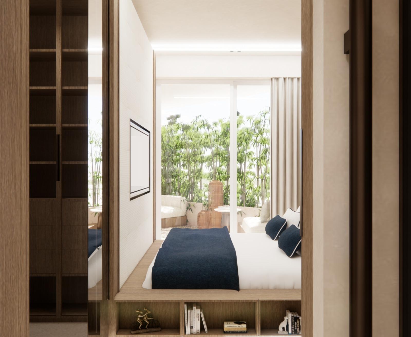 Le grand balcon de 16 m², accessible depuis le salon et la chambre, prolonge l’espace de vie et invite à profiter des journées ensoleillées ou des douces soirées méditerranéennes. La chambre élégante, conçue avec des rangements intégrés, et une salle de bain moderne complètent ce bien parfaitement pensé.