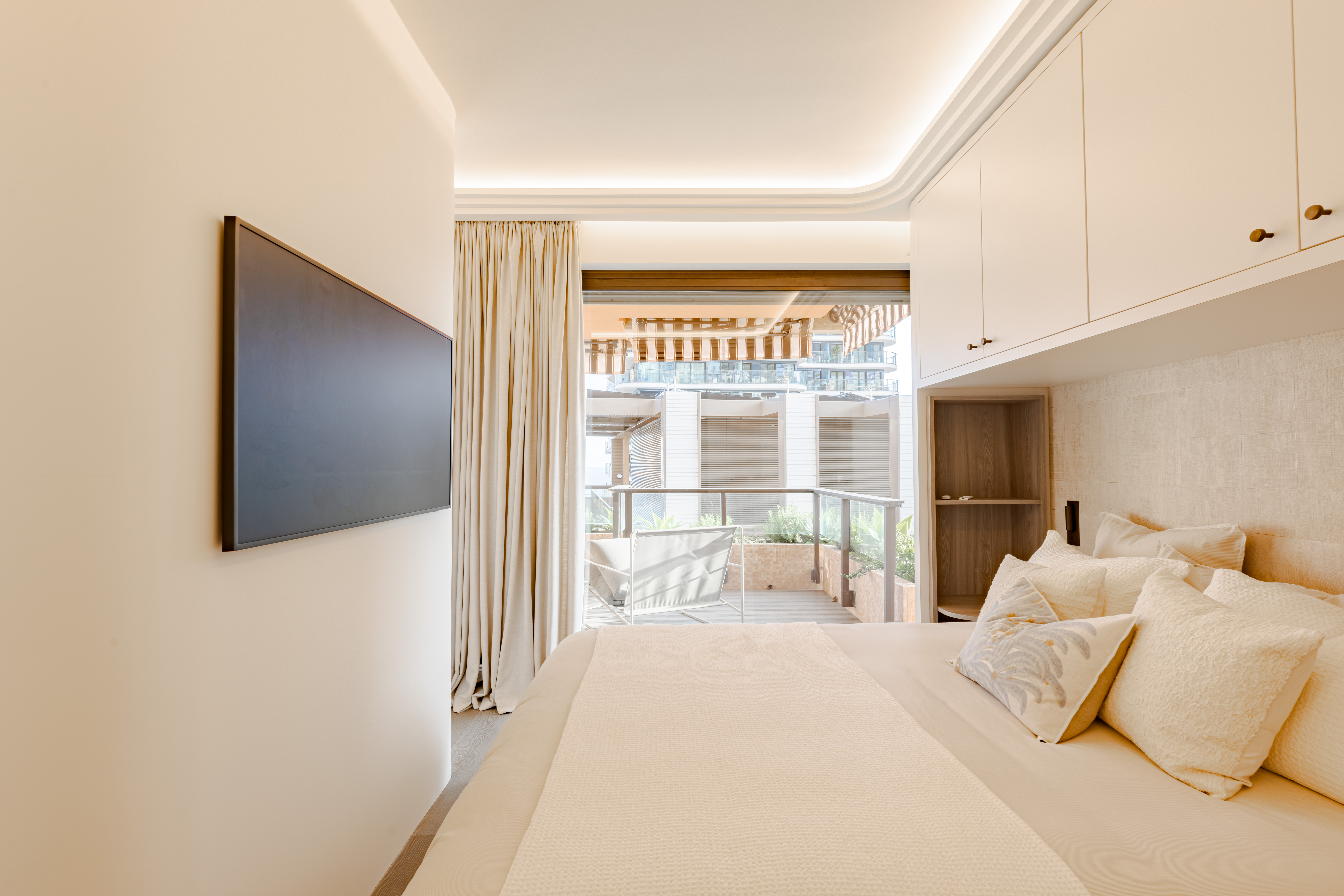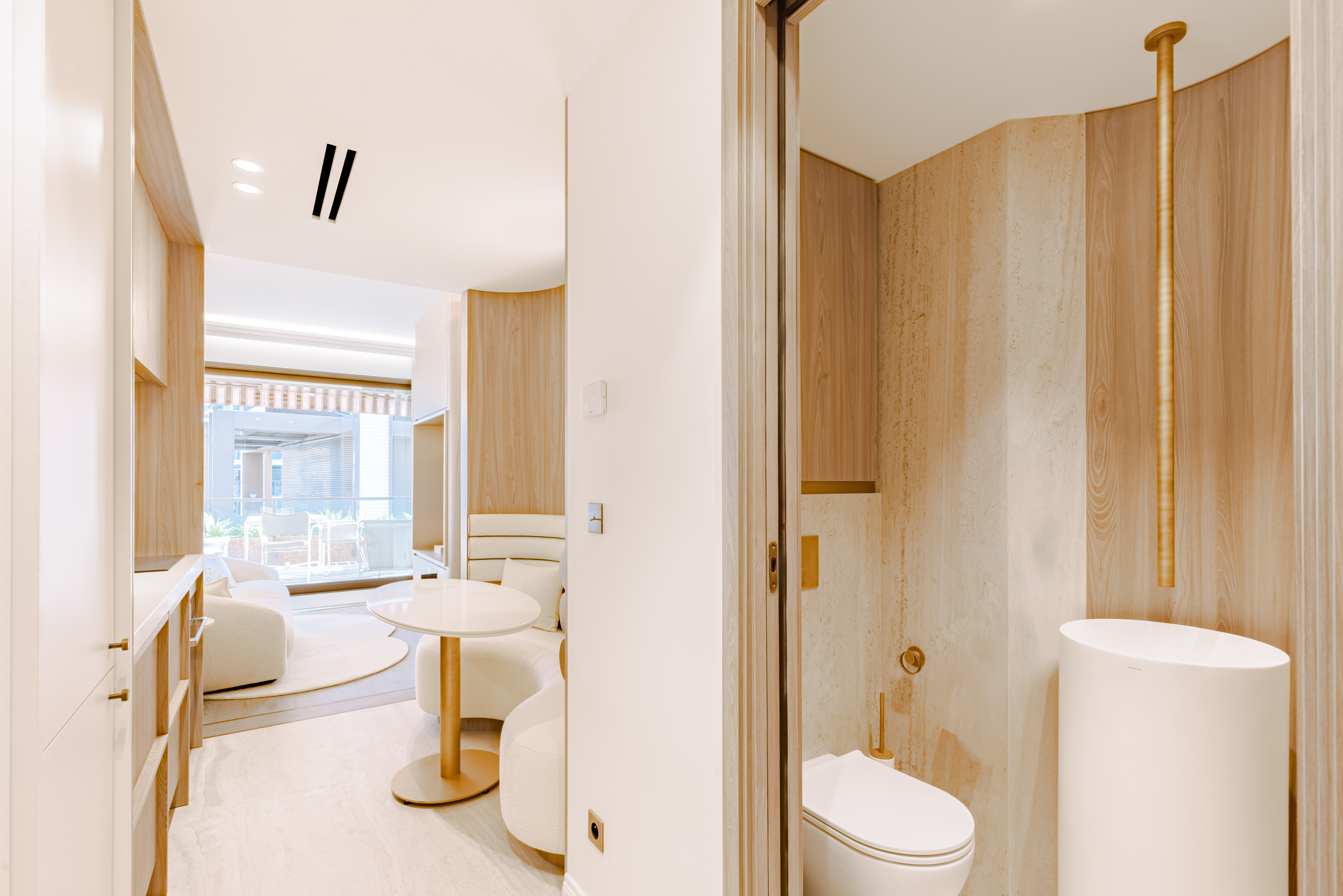 Conçu dans l’esprit des suites des palaces 5 étoiles, situé dans la section terrasse, particulièrement prisée au sein de la résidence, cet appartement raffiné se distingue par l’utilisation de matériaux de prestige et un soin extrême apporté à chaque détail.