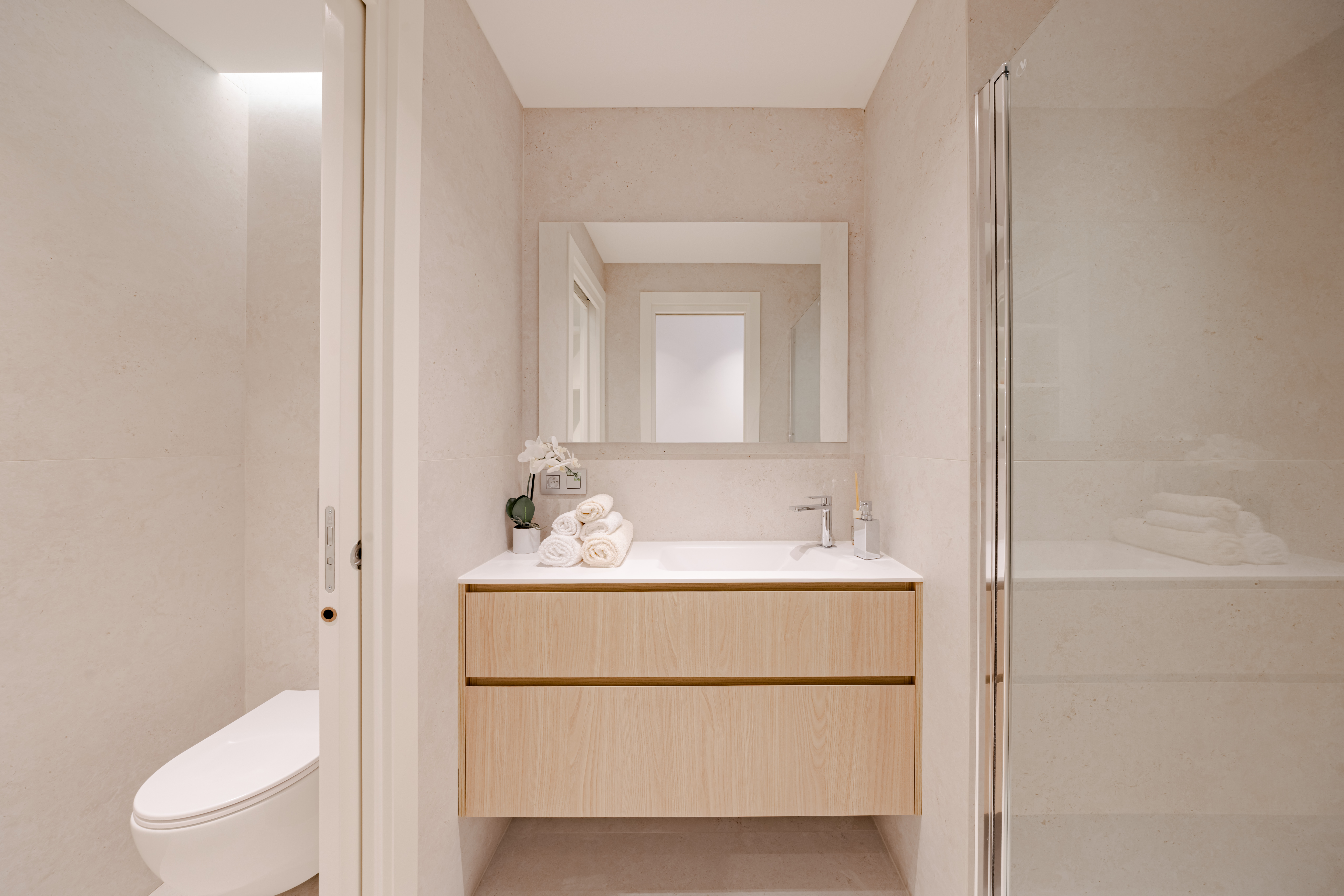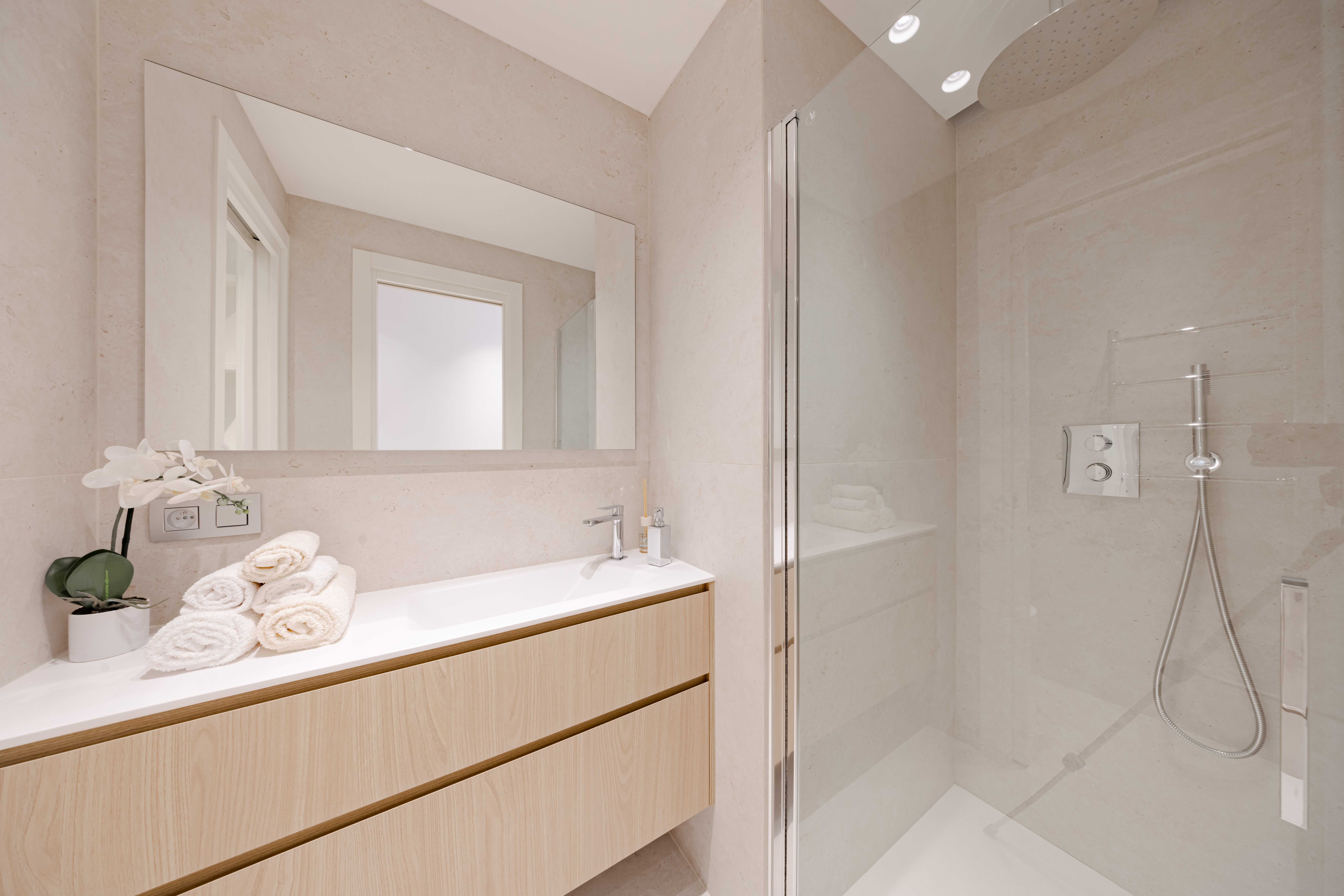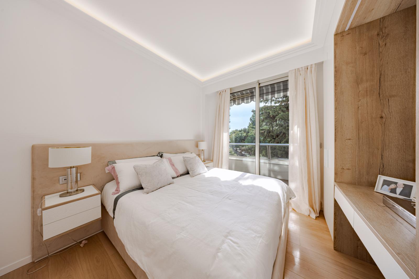 Très agréable appartement 3 pièces, offrant des volumes lumineux et fonctionnels. Il se compose d’une entrée avec rangements intégrés, de deux chambres confortables, de deux salles de bains, ainsi que d’un vaste séjour avec cuisine américaine entièrement équipée, ouvrant sur une élégante terrasse circulaire.
