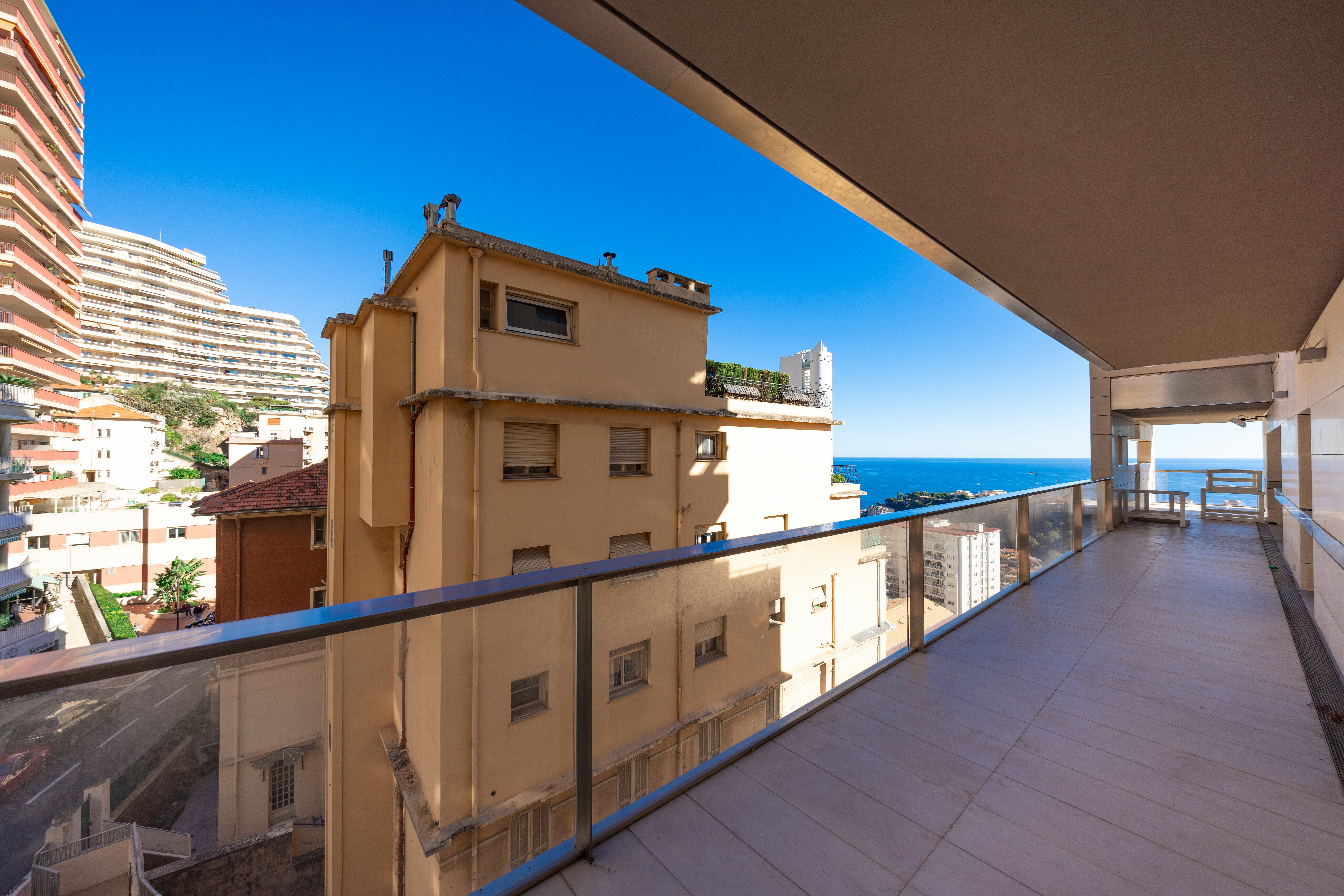 Un magnifique appartement rénové offrant une vue spectaculaire sur le Rocher de Monaco et sur la mer.