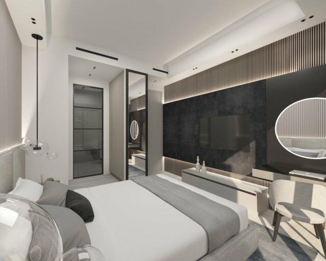 Il se compose d'un hall d'entrée, d'un salon et cuisine ouverte, avec terrasse et de deux chambres et deux salles de bain avec terrasses également.
