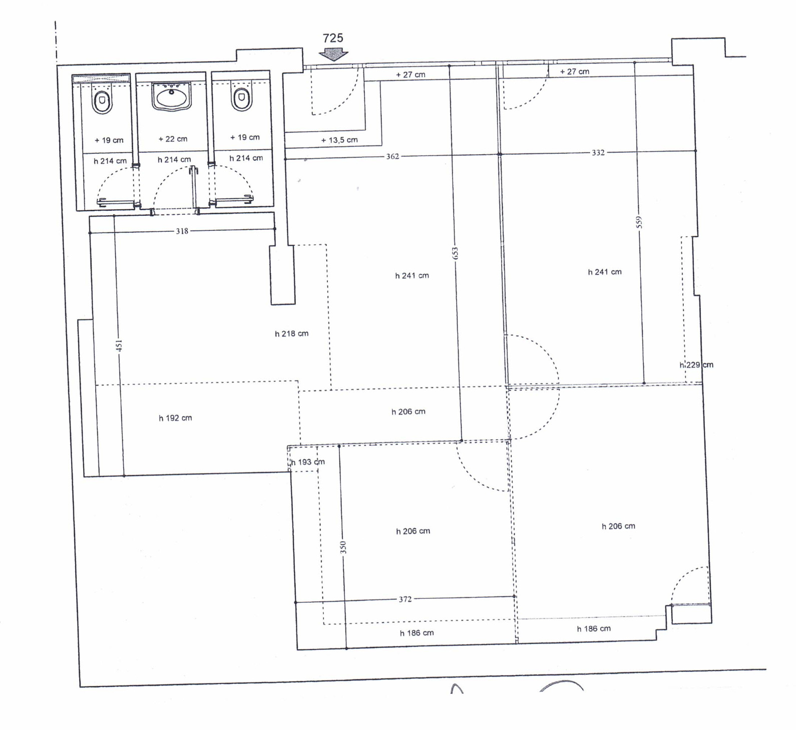 Les bureaux sont composé par une piece principale comprenant 3 bureaux avec cloison vitrées, 2 WC et un dégagement.