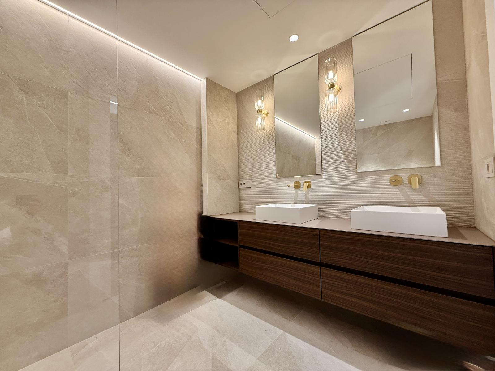 La partie nuit dispose de deux chambres en suite, dont une parentale avec dressing, ainsi que de nombreux rangements optimisés. Un WC invité complète ce bien.