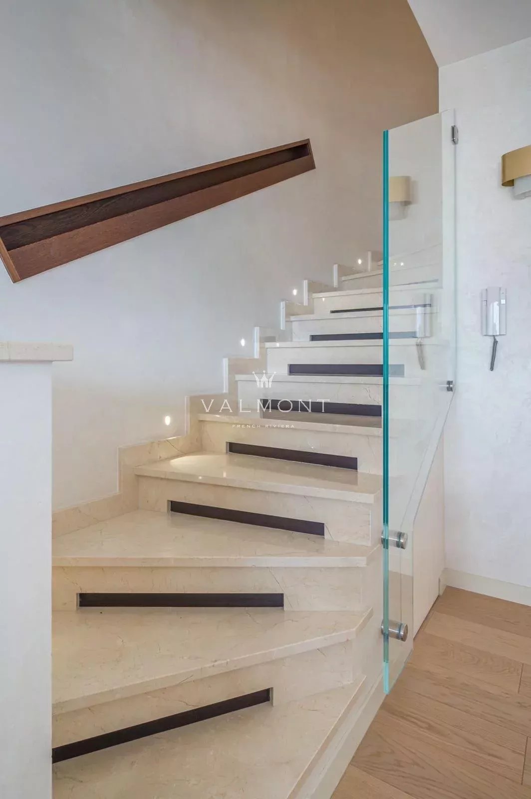 L’étage supérieur dispose de quatre chambres, chacune avec une salle de bain en marbre et un balcon.
