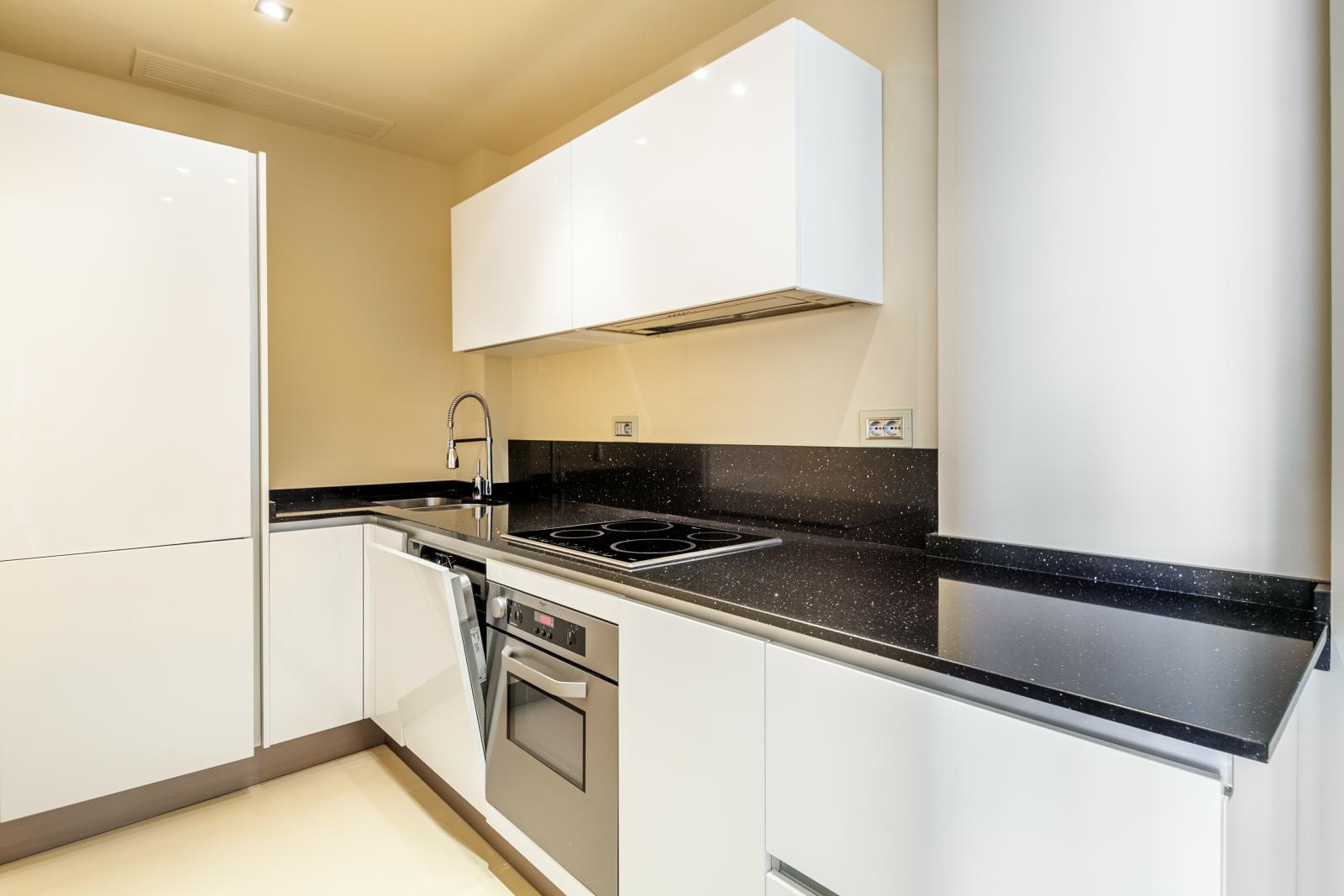 L’appartement se compose d’un salon lumineux avec accès à la terrasse, d’une cuisine indépendante entièrement équipée, d’une chambre spacieuse avec une salle de douche en suite, ainsi que de toilettes pour invités. La chambre et le salon donnent tous deux sur cette grande terrasse, où vous pourrez profiter des couchers de soleil spectaculaires sur la Méditerranée.