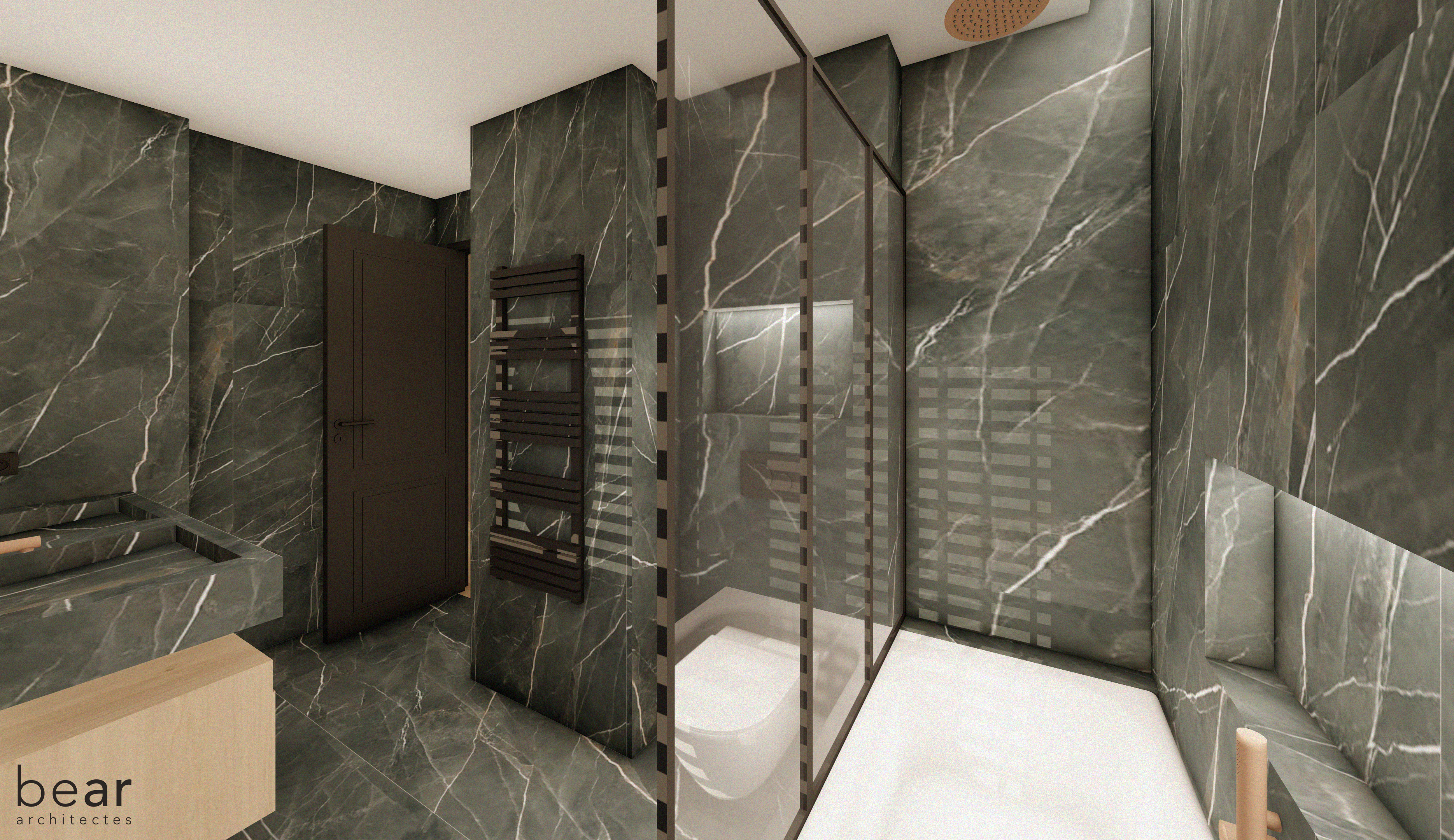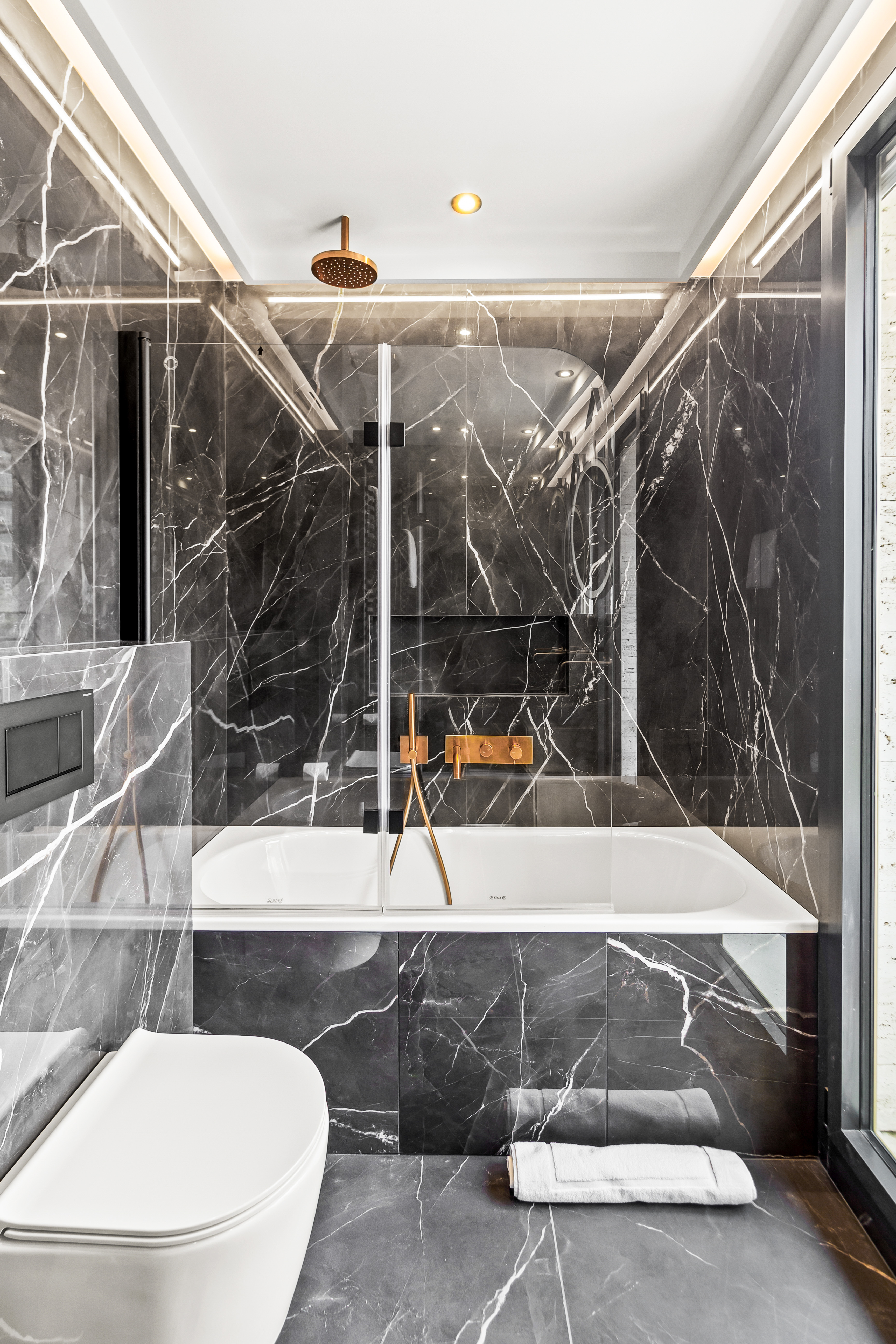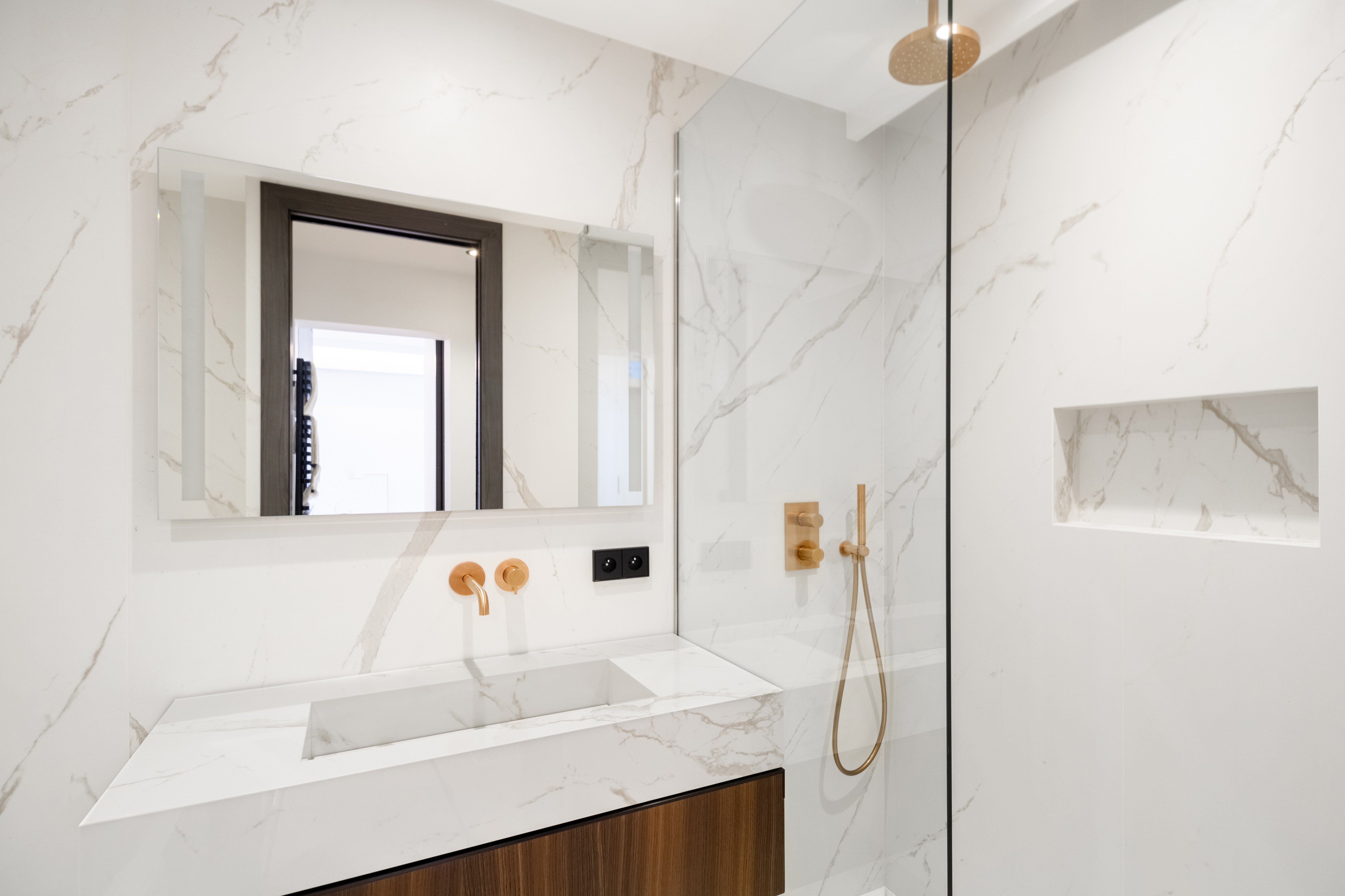 L'appartement se compose d’une entrée, d’un spacieux séjour avec salle à manger et cuisine américaine entièrement équipée, de deux chambres en suite disposant chacune de leur propre salle de bain (douche et baignoire), ainsi que de deux toilettes indépendants. Une buanderie, un dressing walk-in et plusieurs rangements intégrés viennent compléter l’agencement optimisé de ce bien traversant.
