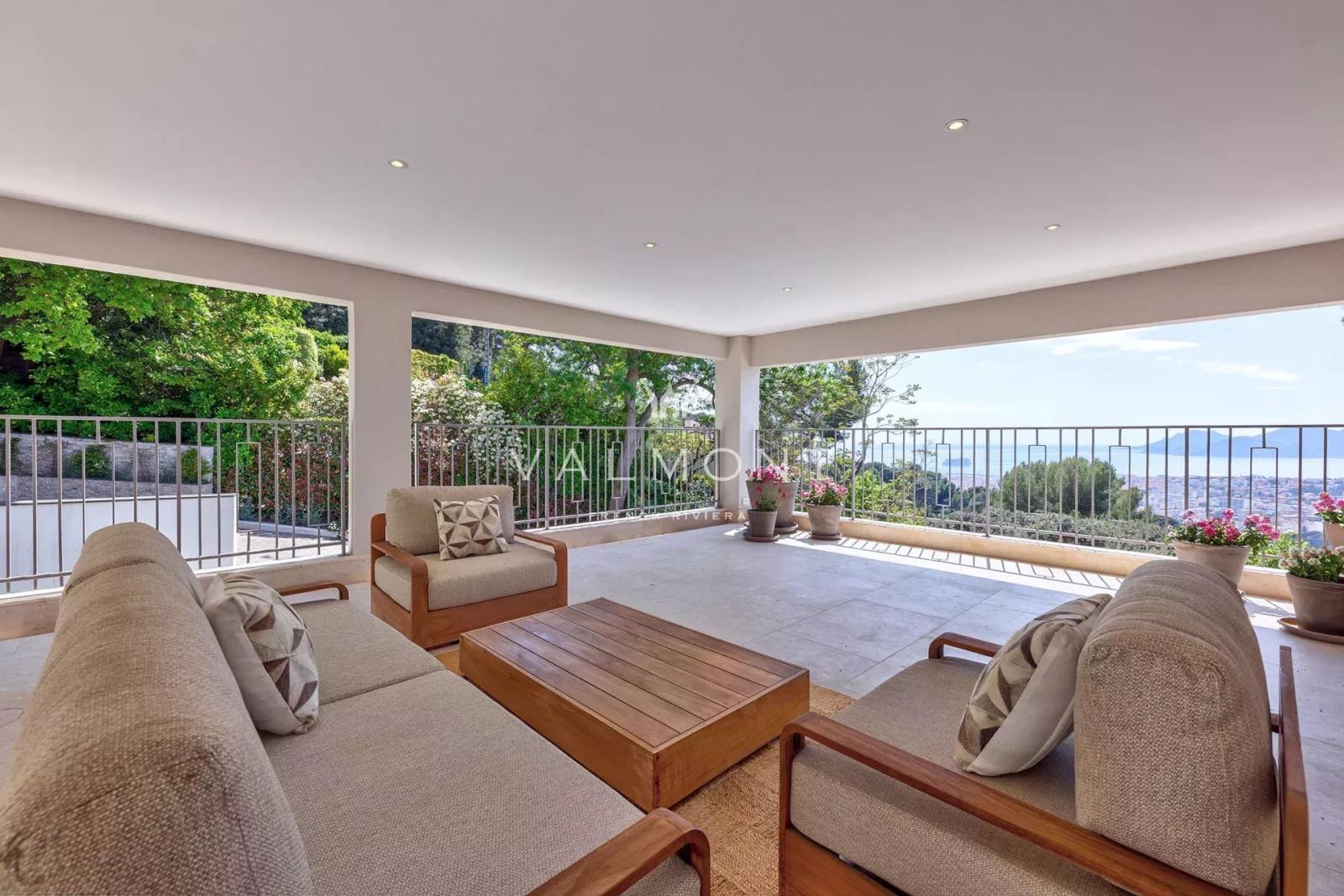 Perchée sur les paisibles collines surplombant Cannes, cette villa magnifiquement rénovée offre environ 420 m² d'espace de vie raffiné, avec une vue imprenable sur la Méditerranée et la ville en contrebas.