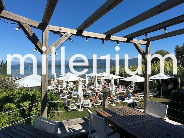 Terrasse d'environ 170m2 ainsi qu'une plage privée de 435 m², véritable atout commercial et lieu d’expérience client.