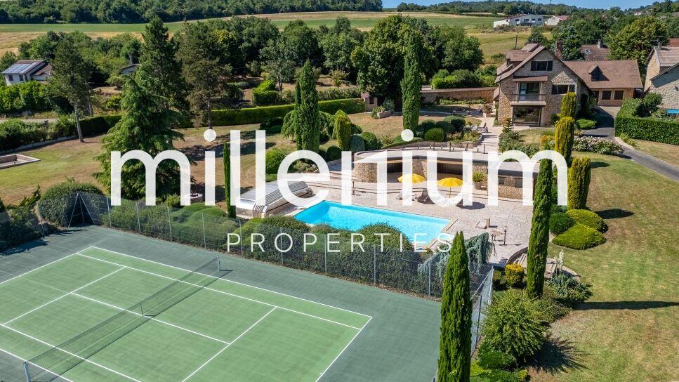 - de multiples terrasses en pierre de Bourgogne conçues tout autour de la propriété.