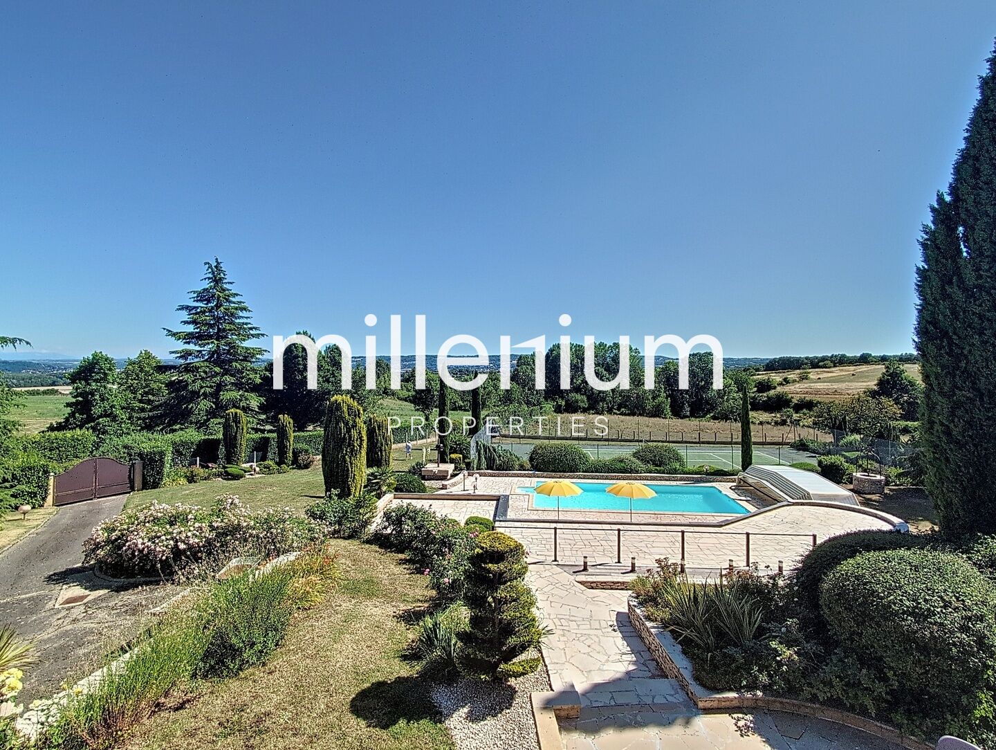- 6 chambres à l'étage dont une suite Master et son balcon avec vue panoramique sur la campagne environnante et la piscine .