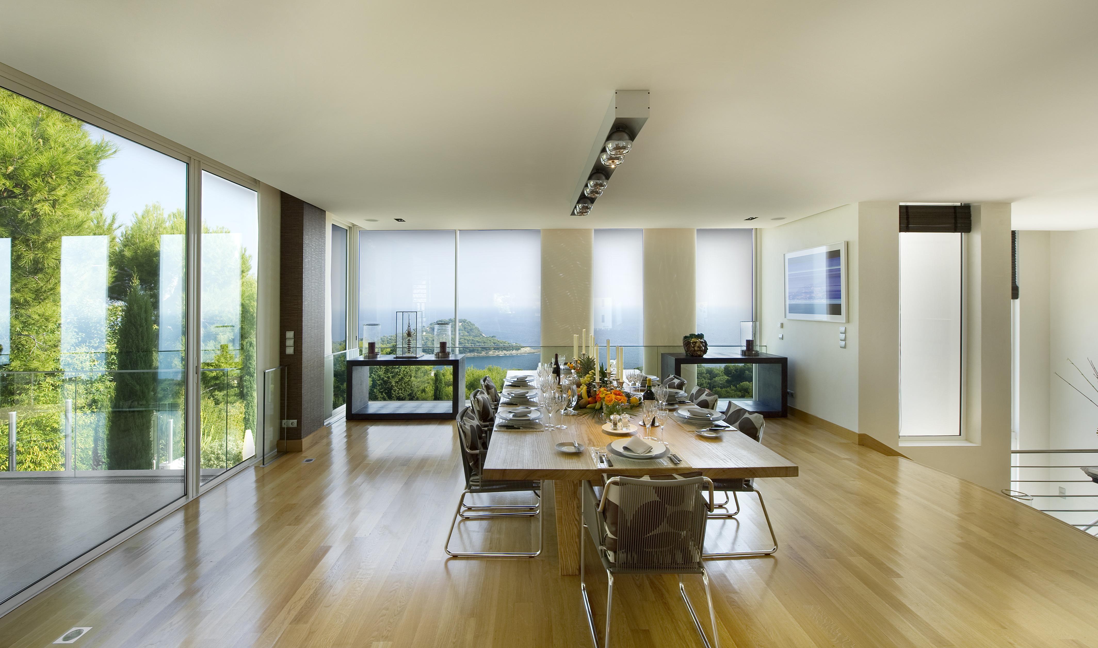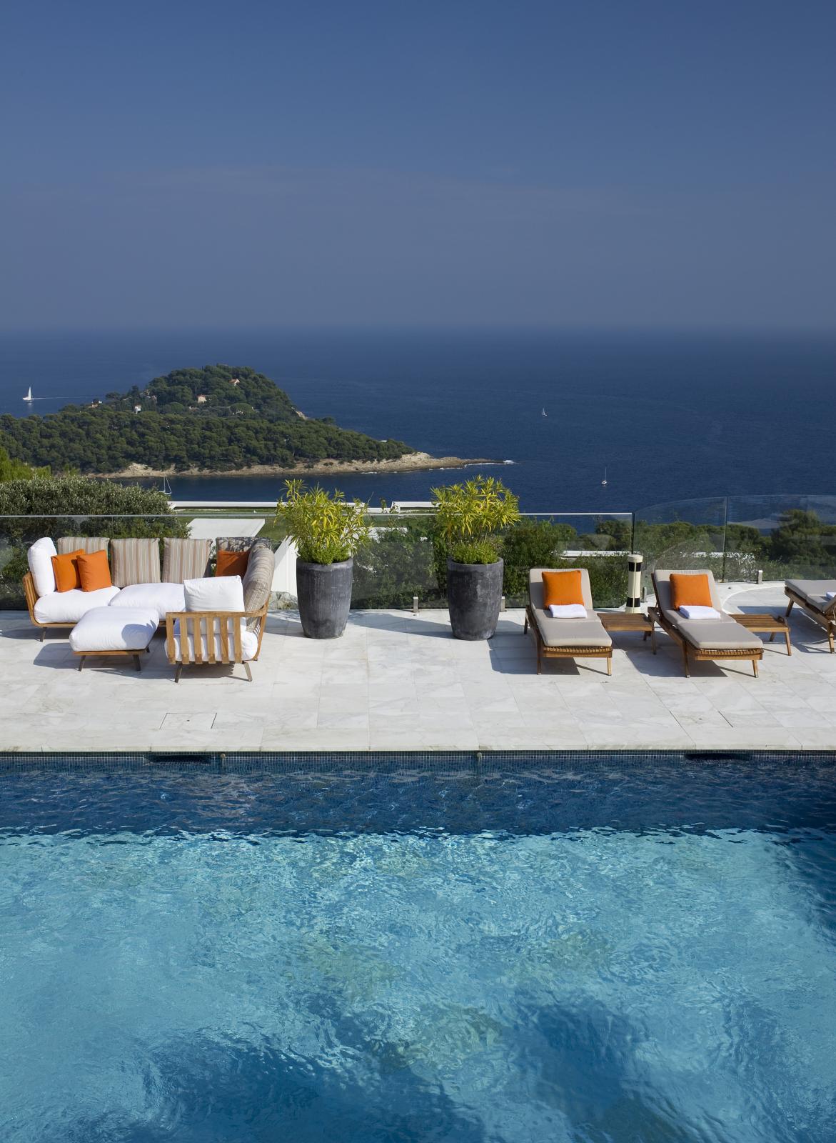 La villa dispose de sept suites, toutes avec salle de bains et terrasse privative, décorées avec élégance et confort. Les espaces de vie, salon et salle à manger, légèrement surélevés, profitent d’une vue mer panoramique à 180°. La cuisine Boffi, entièrement équipée, séduira les amateurs de gastronomie.