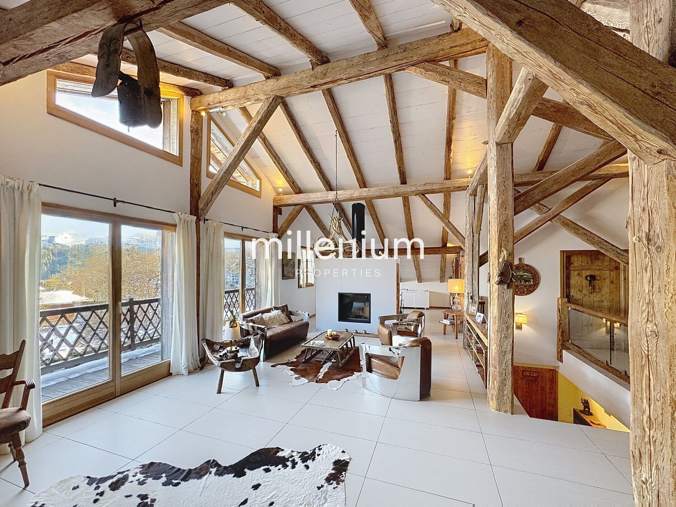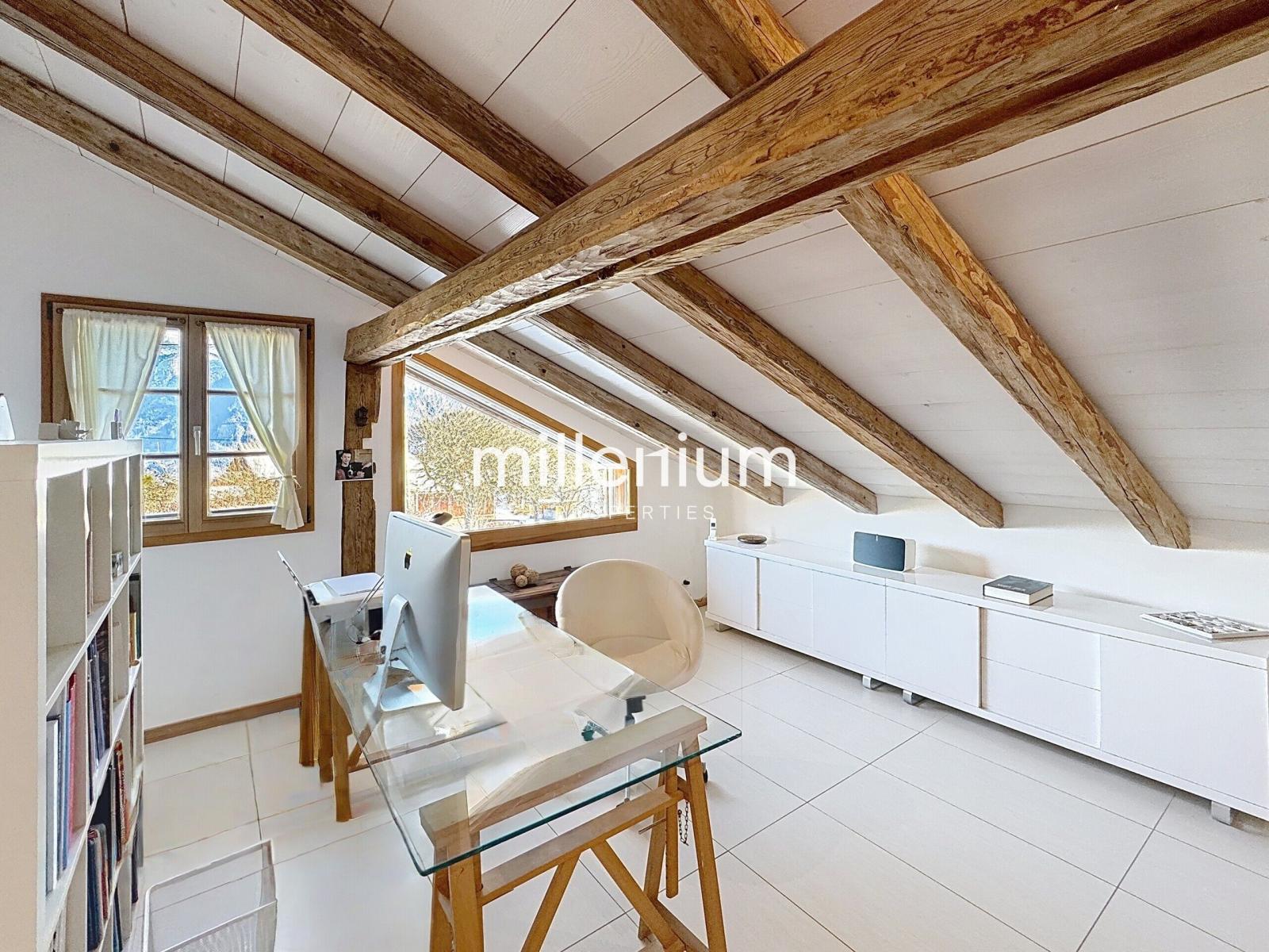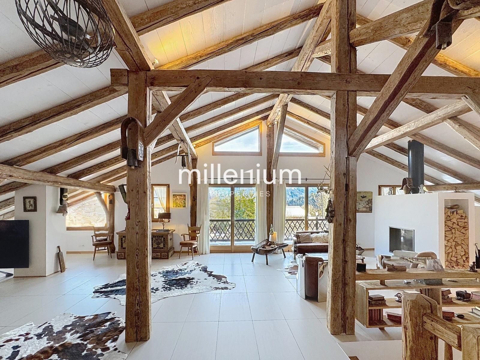 Située sur les hauteurs de Sallanches, à proximité immédiate des villages recherchés de Cordon et Combloux, et à seulement quinze minutes de Megève, cette authentique ferme savoyarde du XVIIIᵉ siècle témoigne d’une rénovation remarquable, menée avec un profond respect de son histoire et de son architecture d’origine.