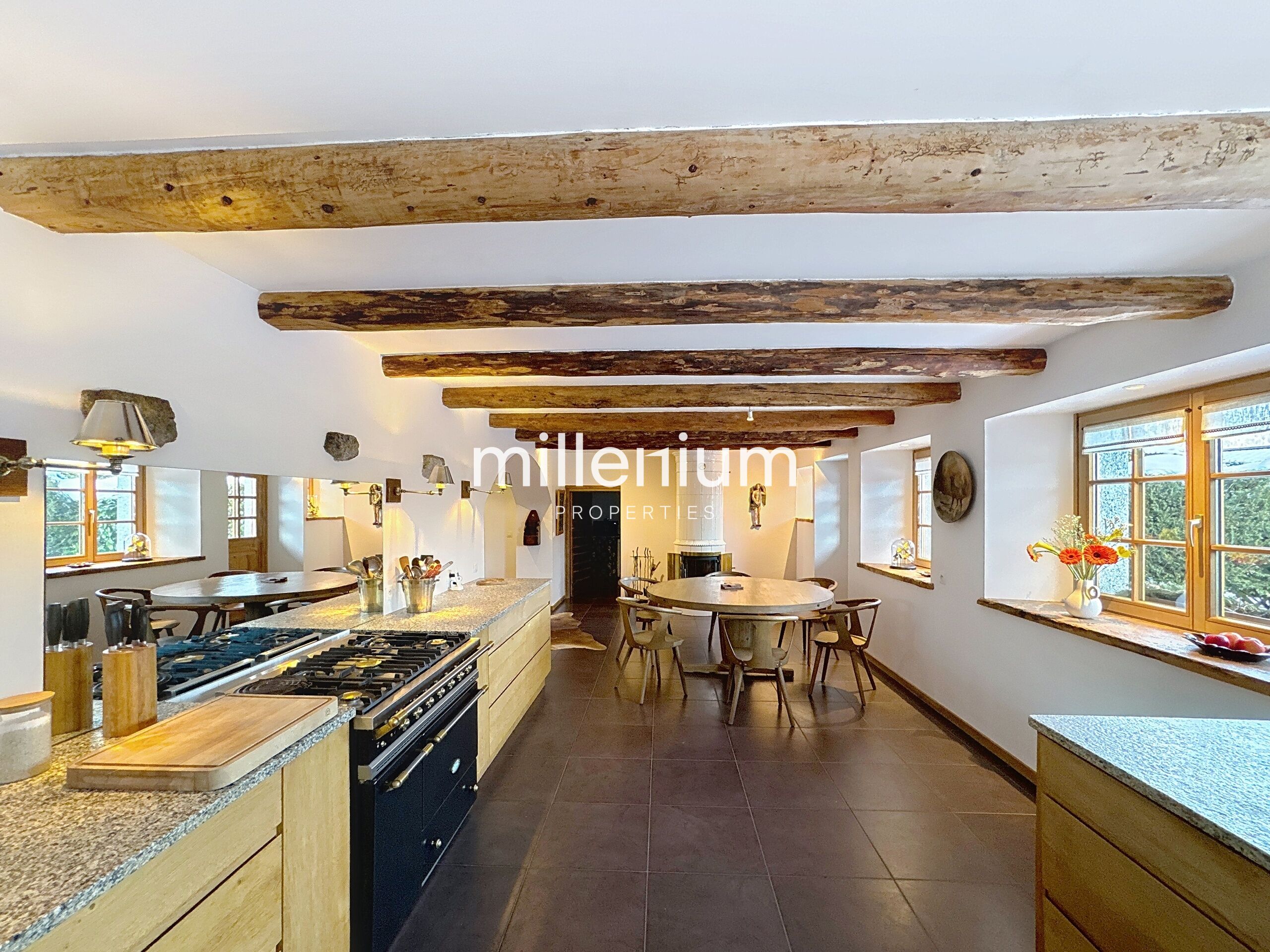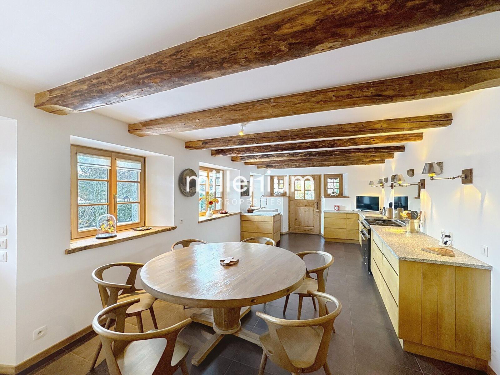 La rénovation, réalisée avec exigence et savoir-faire, sublime le charme de l’ancien à travers l’utilisation de matériaux nobles et authentiques : bois anciens patinés par le temps, poutres apparentes conservées, finitions artisanales et choix techniques haut de gamme. L’ensemble conjugue avec élégance le cachet d’origine et le confort d’une habitation.