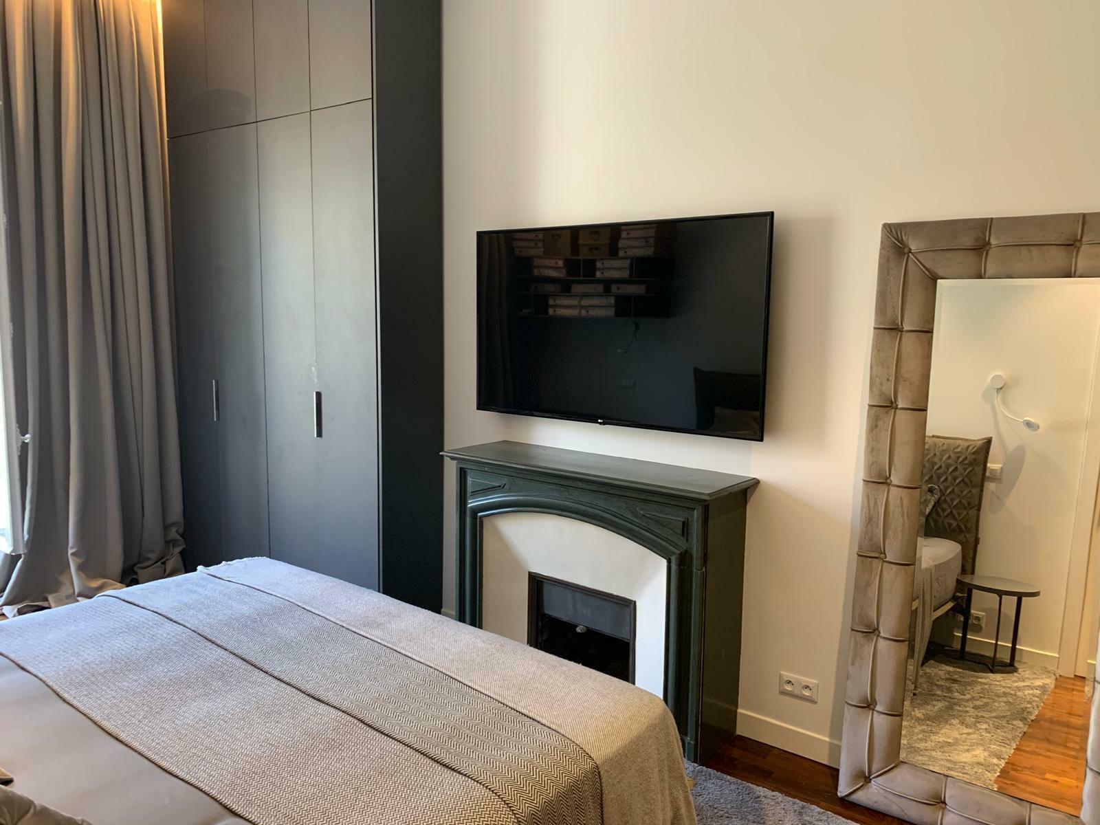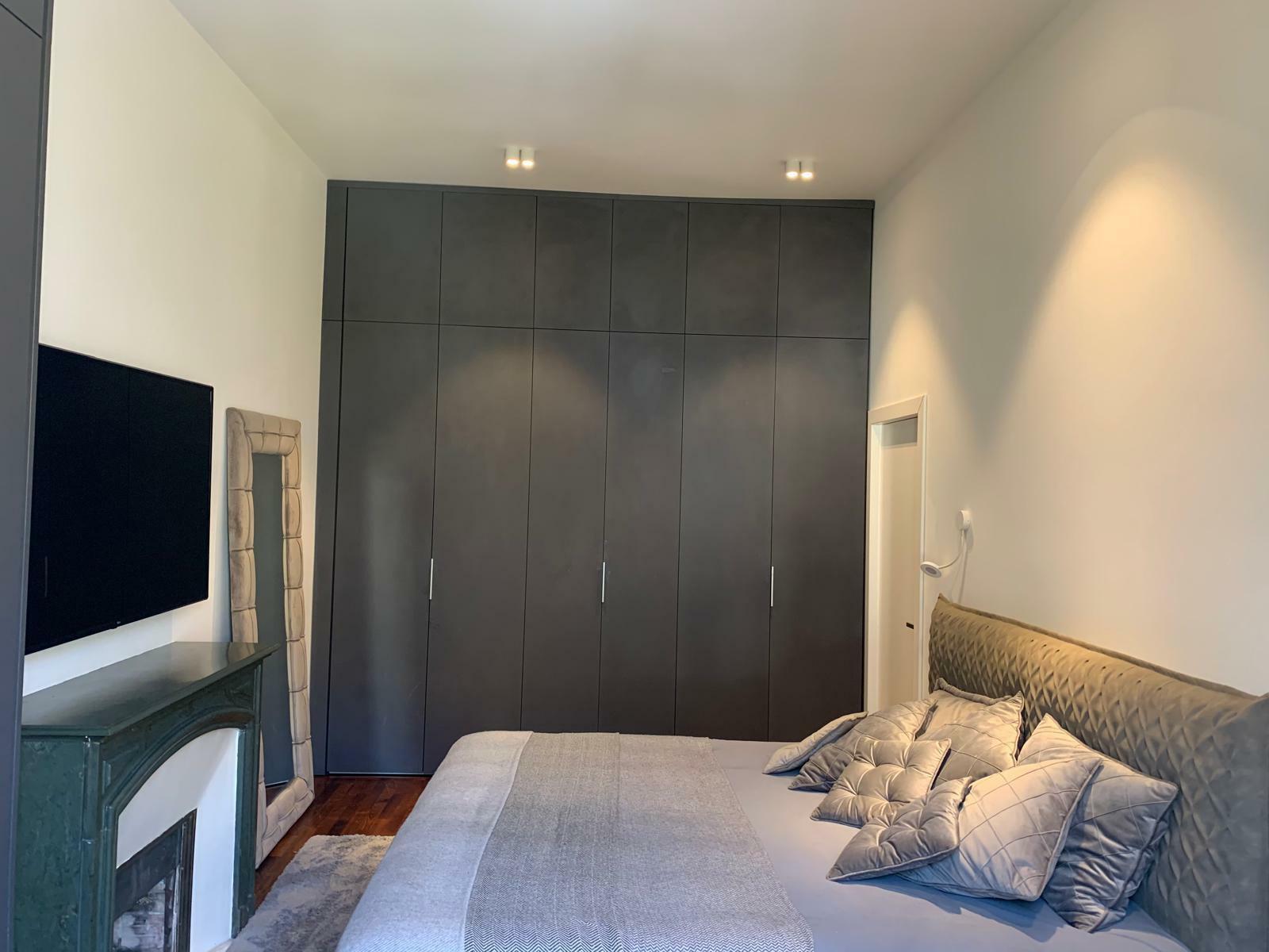 La chambre principale dispose de nombreux rangements sur mesure ainsi que d’un espace bureau élégant.