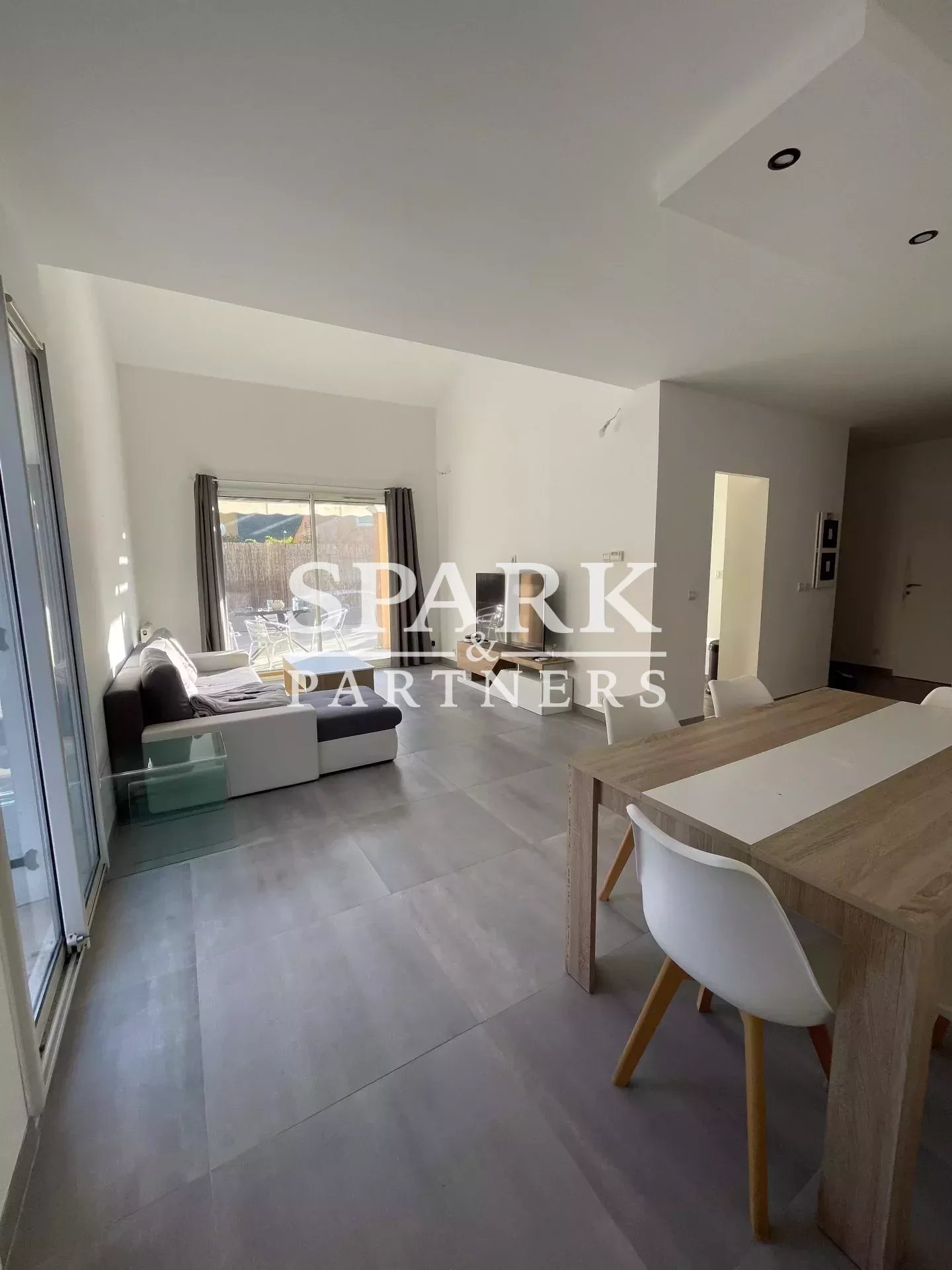 D'une surface de 98 m², elle offre des prestations modernes et élégantes. Dès l'entrée, un hall avec rangements et toilettes invités vous accueille, menant à une cuisine entièrement équipée. Le vaste salon séjour, agrémenté d'une salle à manger lumineuse, bénéficie d'un ensoleillement optimal grâce à deux grandes ouvertures, avec un accès direct à une spacieuse terrasse.