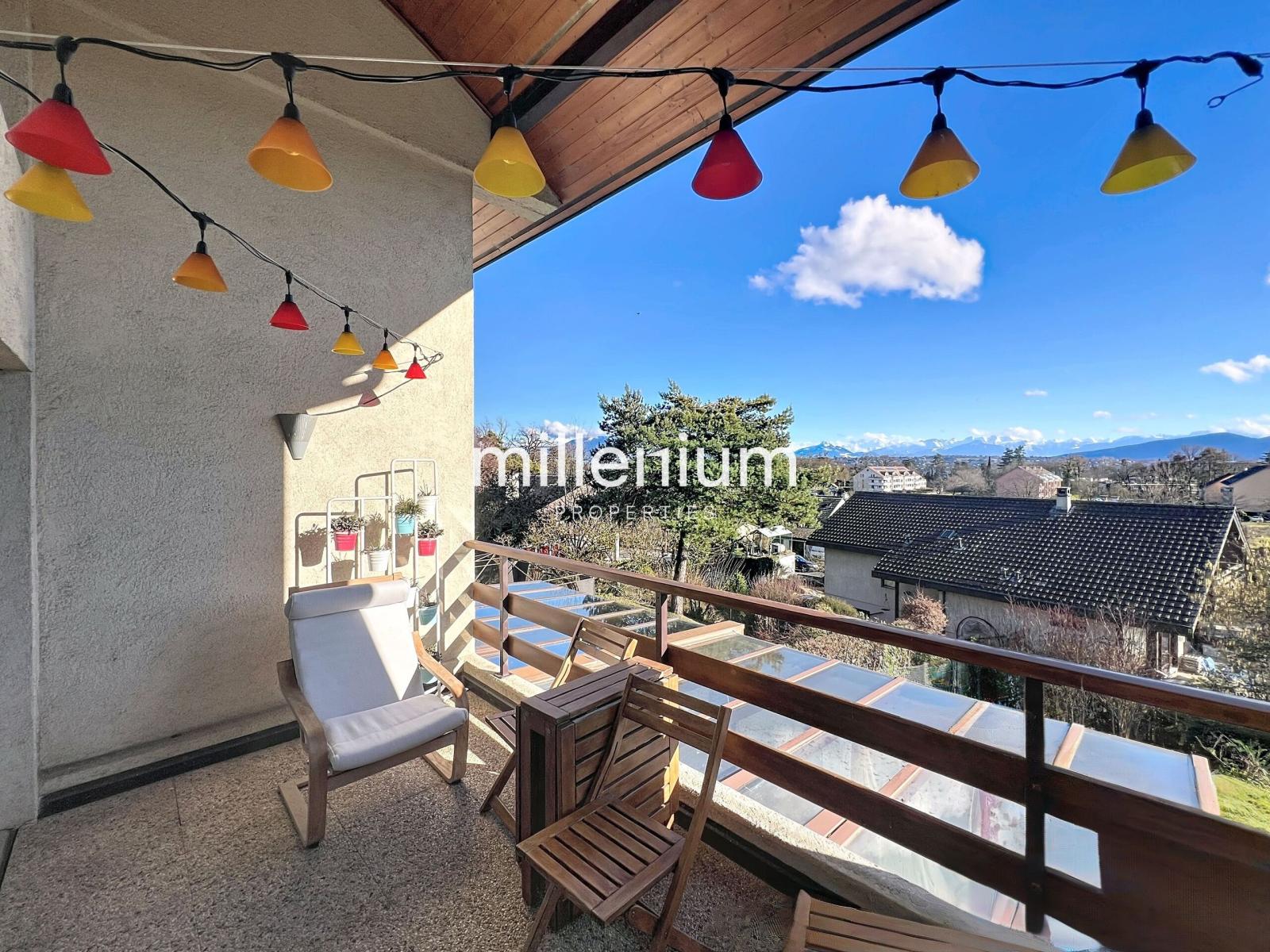 Situé au premier et dernier étage, ce bien séduit par sa luminosité, ses volumes bien répartis et surtout par sa vue imprenable sur les Alpes, offrant un panorama dégagé et spectaculaire.