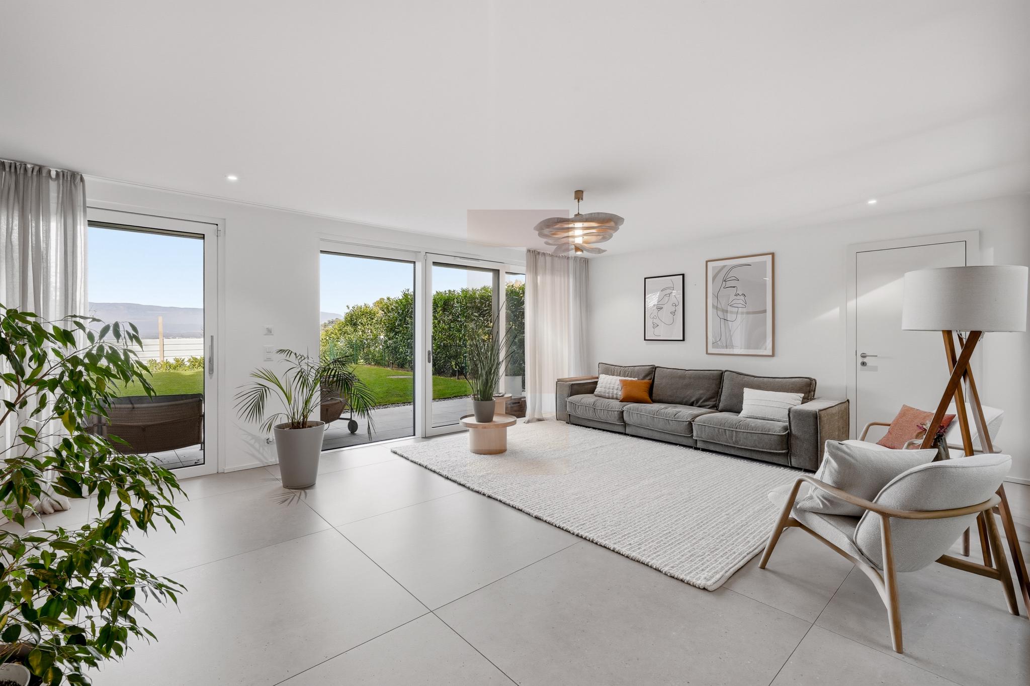 Implanté sur une magnifique parcelle proche du centre de Vésenaz, au sein d’une prestigieuse résidence, ce townhouse récent bénéficie d’un cadre de vie exclusif et d’une belle vue sur le lacS’inspirant d’une architecture contemporaine et épurée, où la lumière et les perspectives jouent un rôle central, ce bien offre environ 220 m² habitables et 300 m² utiles, répartis sur trois niveaux, avec un jardin privé d’environ 160 m².