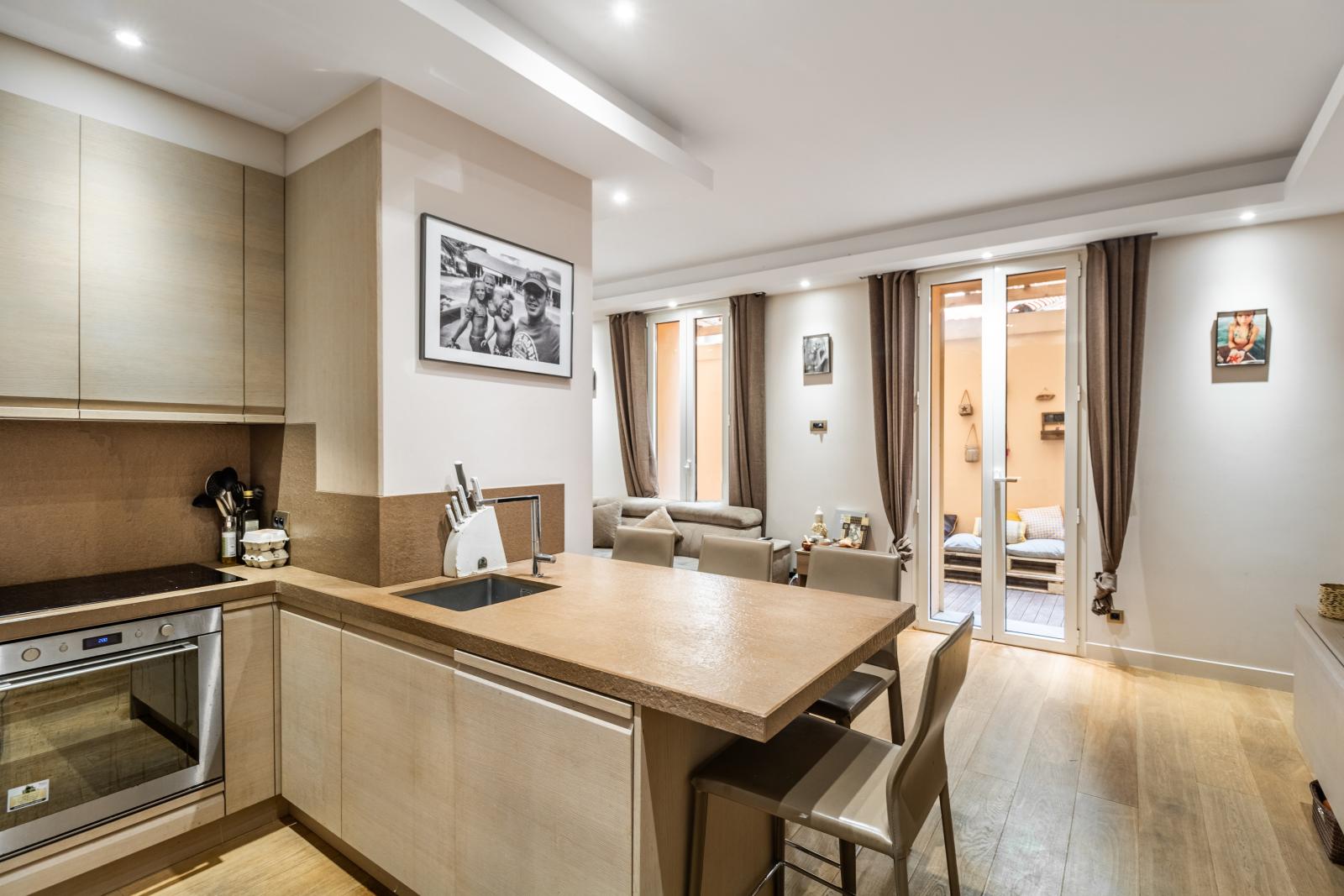 A 2 pas du marché de la Condamine, au calme, beau 4 pièces entièrement rénové. Idéal pour une famille. Libre de loi.