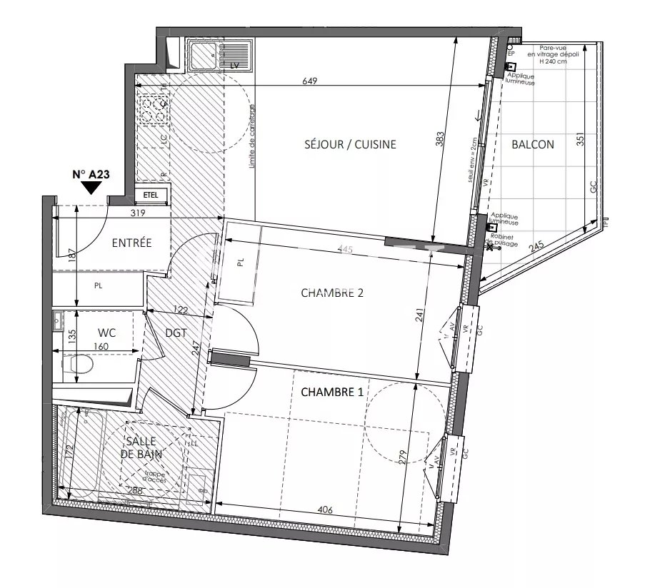 Cet appartement de 3 pièces se compose d'une entrée, un séjour avec cuisine ouverte, deux chambres, une salle d'eau, des toilettes pour les invités ainsi que d'une terrasse.