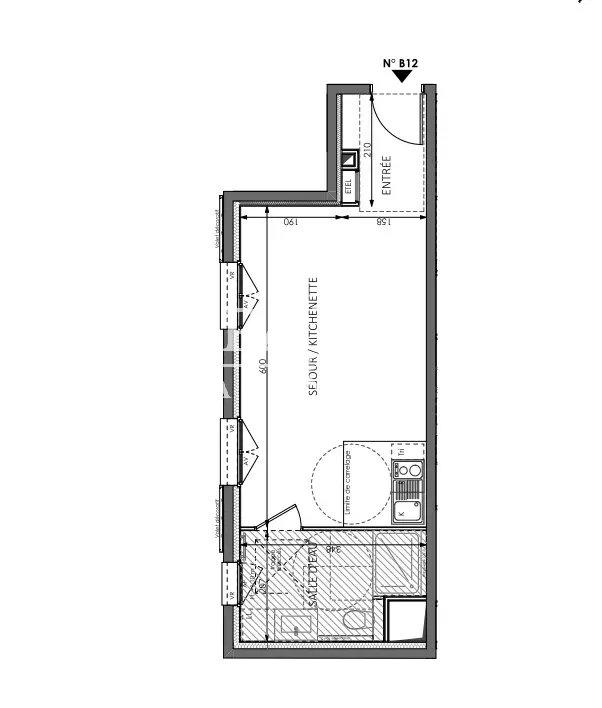 Ce studio se compose d’une entrée, d’un séjour avec cuisine ouverte ainsi qu'une salles de douche.